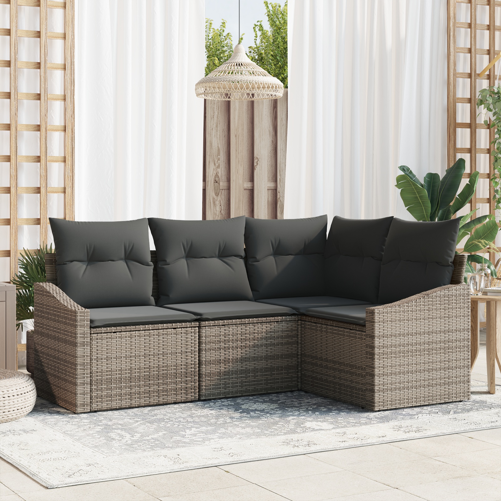 vidaXL 4-dielny záhradný pohovkový set s vankúšmi sivý poly ratan