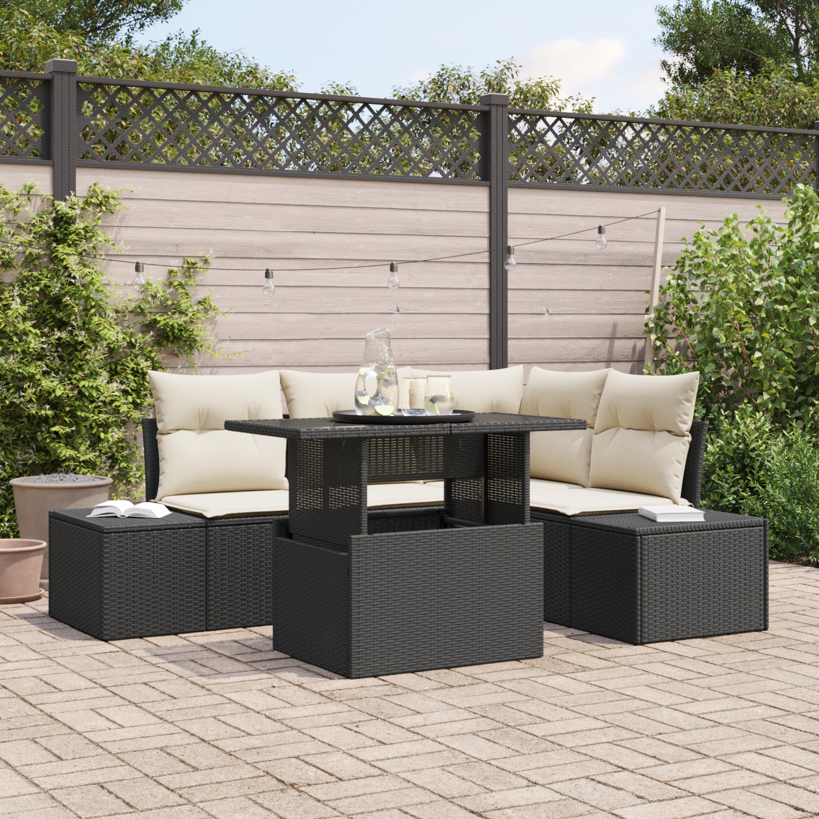 vidaXL 5-dielna sada záhradného gauča s vankúšmi čierny poly ratan