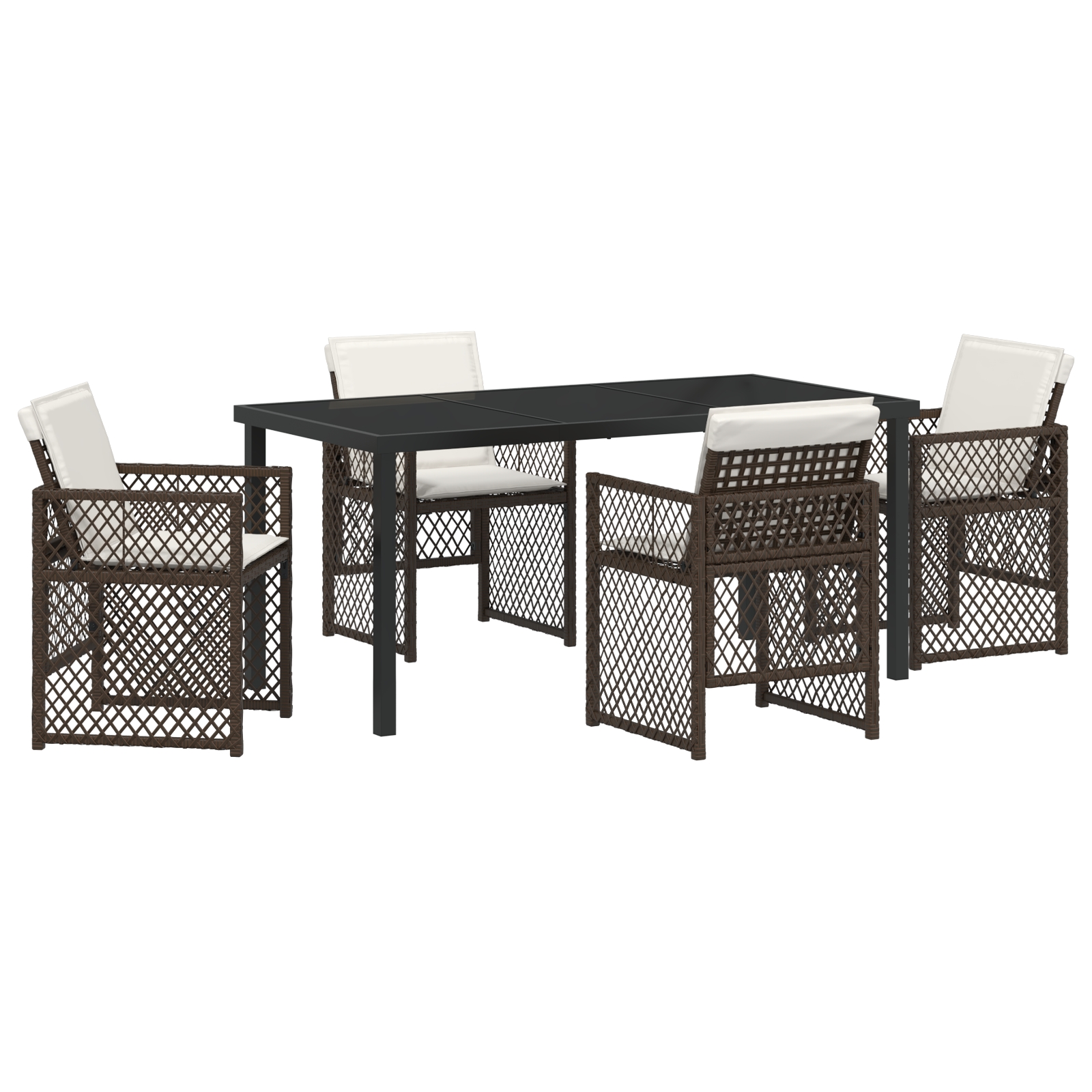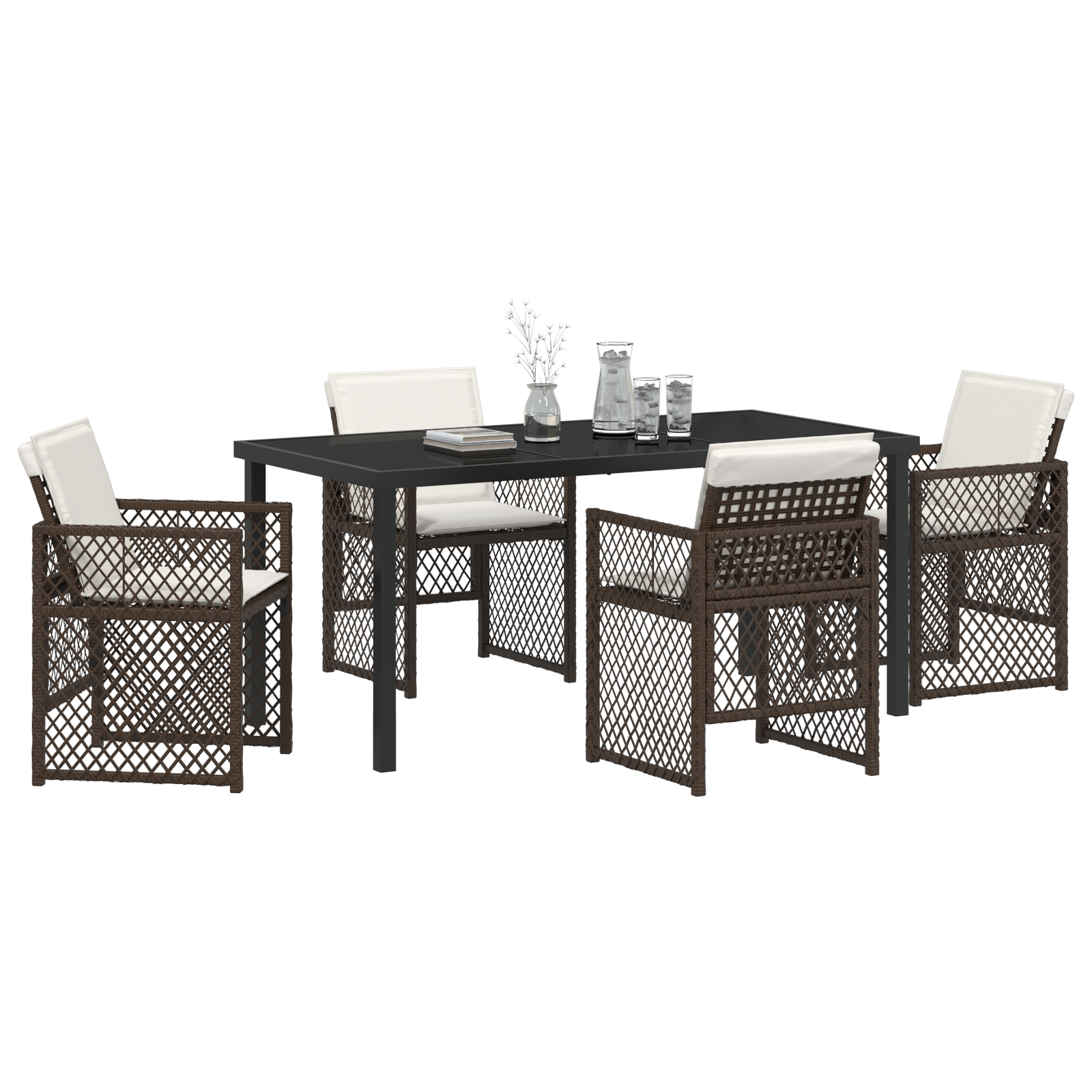 vidaXL 5-dielna sada záhradného jedálenského setu s vankúšmi Hnedá Poly Rattan, vidaXL Záhradný stôl Čierny 160x80x73 cm Temperované sklo