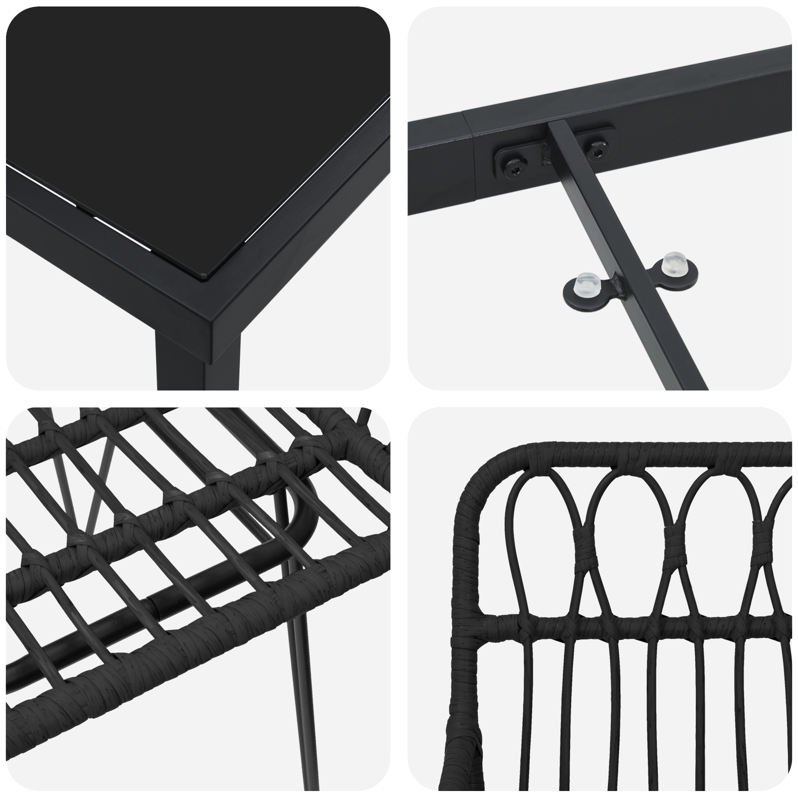• Štýlový dizajn: Moderný vzhľad týchto stoličiek vylepšuje akúkoľvek vonkajšiu dekoráciu. Elegantná čierna estetika vytvára štýlové prostredie na relaxáciu alebo jedlo.