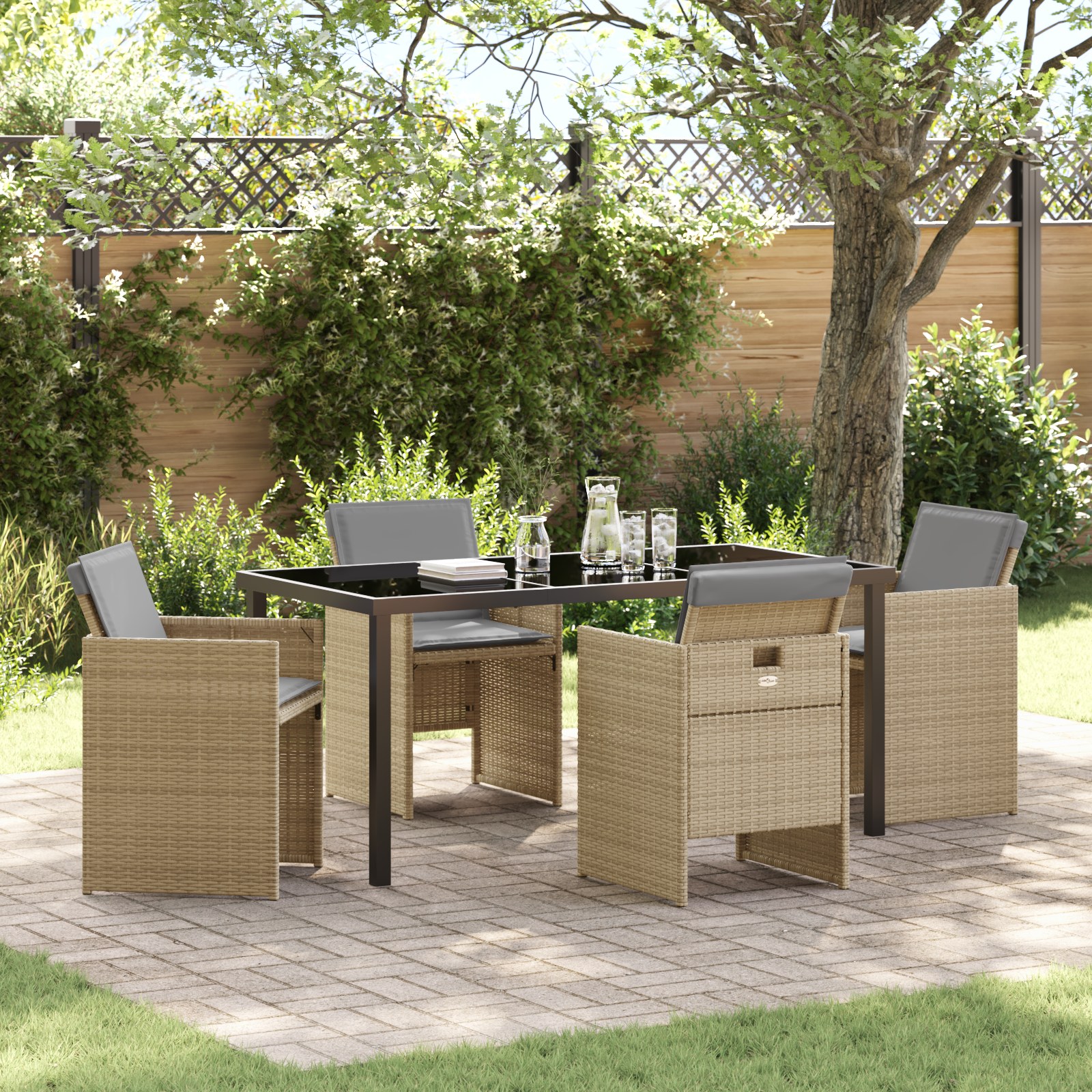 vidaXL 5-dielna súprava záhradného jedálenského nábytku s vankúšmi béžový PE ratan