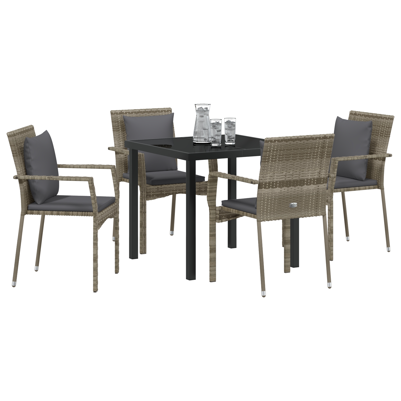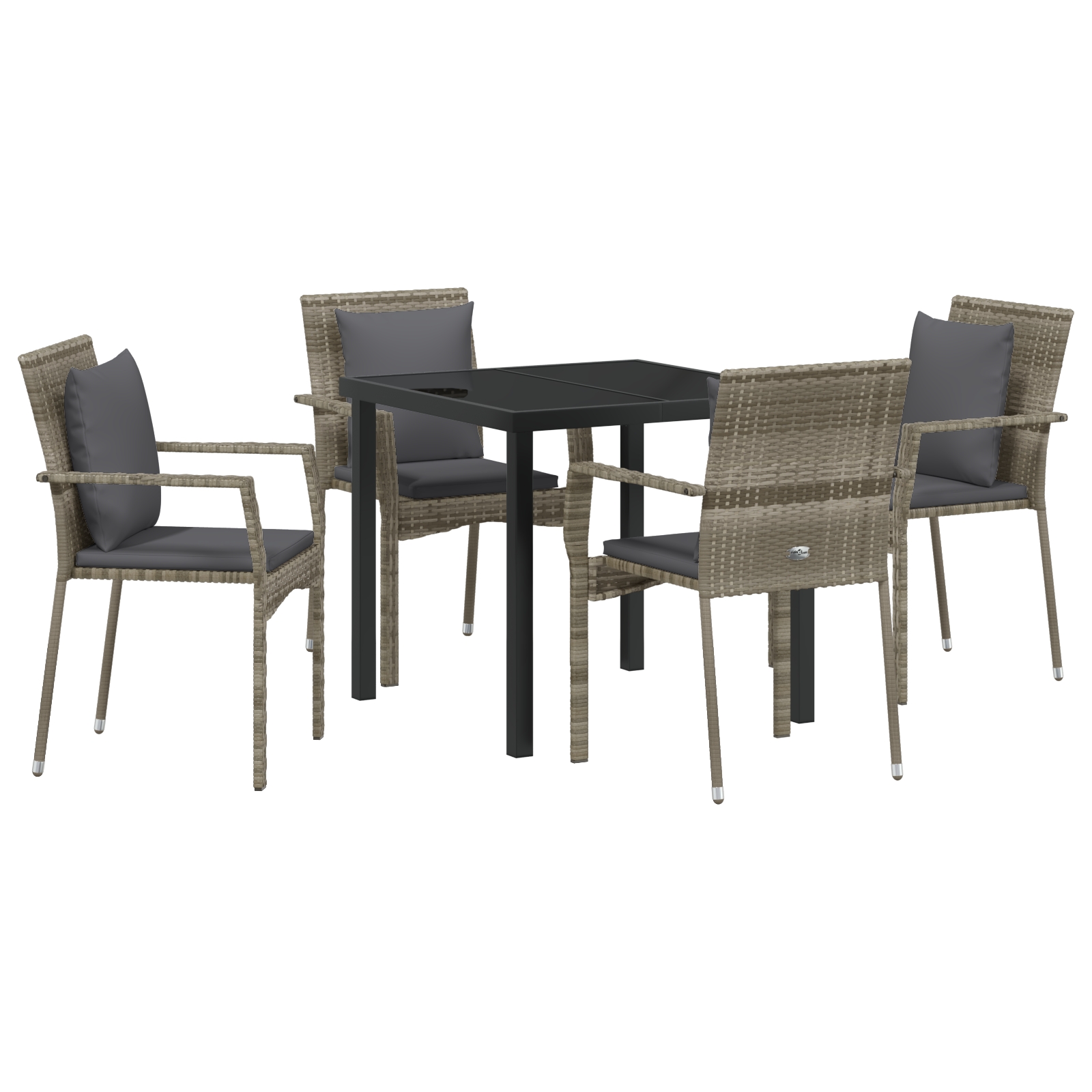 vidaXL 5-dielna súprava záhradného jedálenského nábytku s vankúšmi sivý polyratan