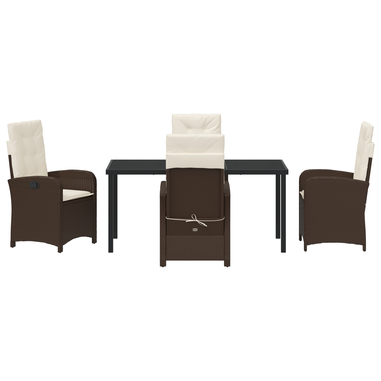 vidaXL 5-dielna súprava záhradného jedálenského setu s poduškami, hnedá poly ratan