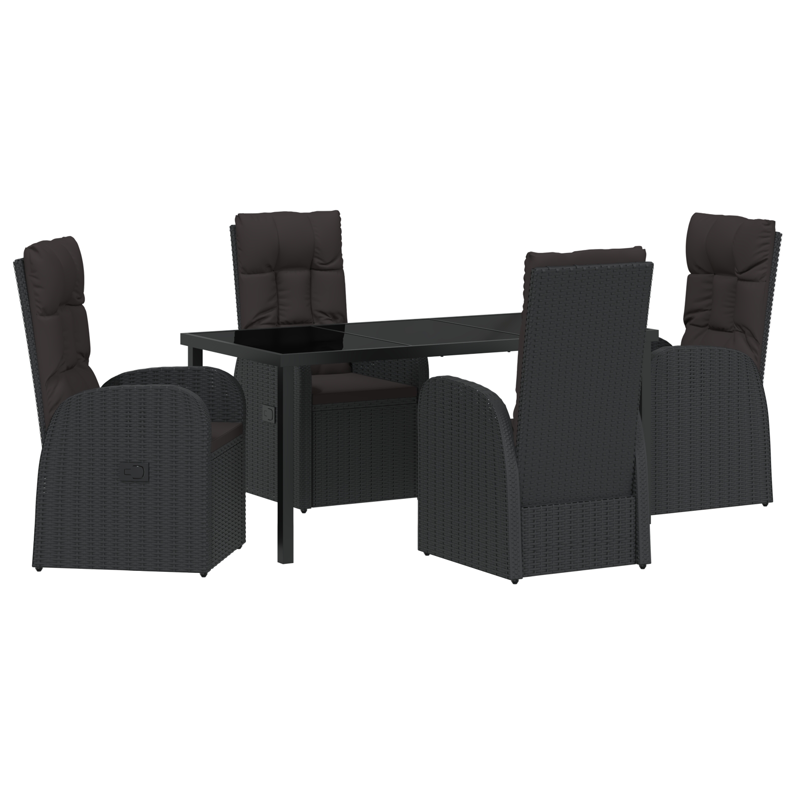 vidaXL 5-dielna záhradná jedálenská sada s vankúšmi čierny poly ratan