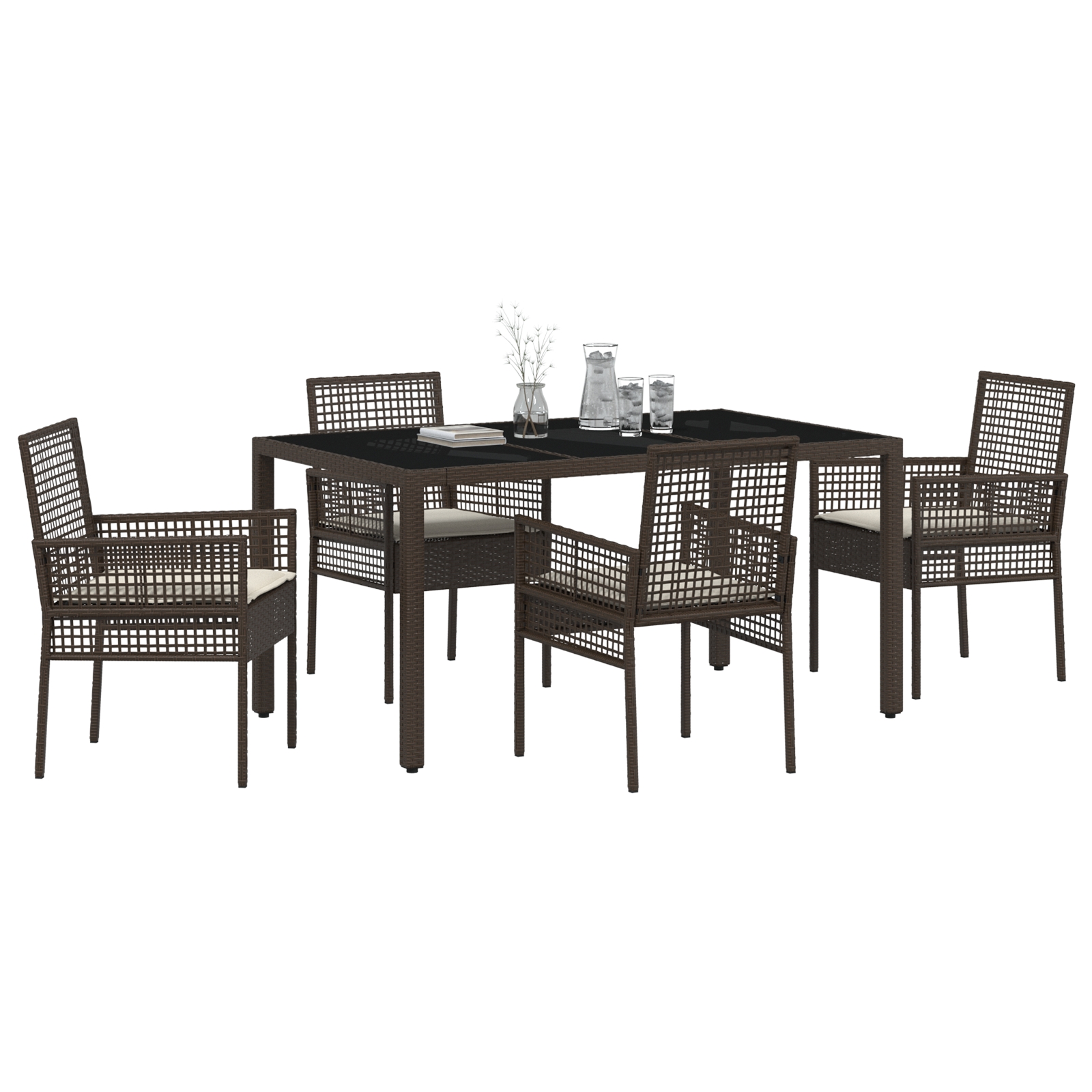 vidaXL 5-dielna záhradná jedálenská sada s vankúšmi hnedá poly ratan