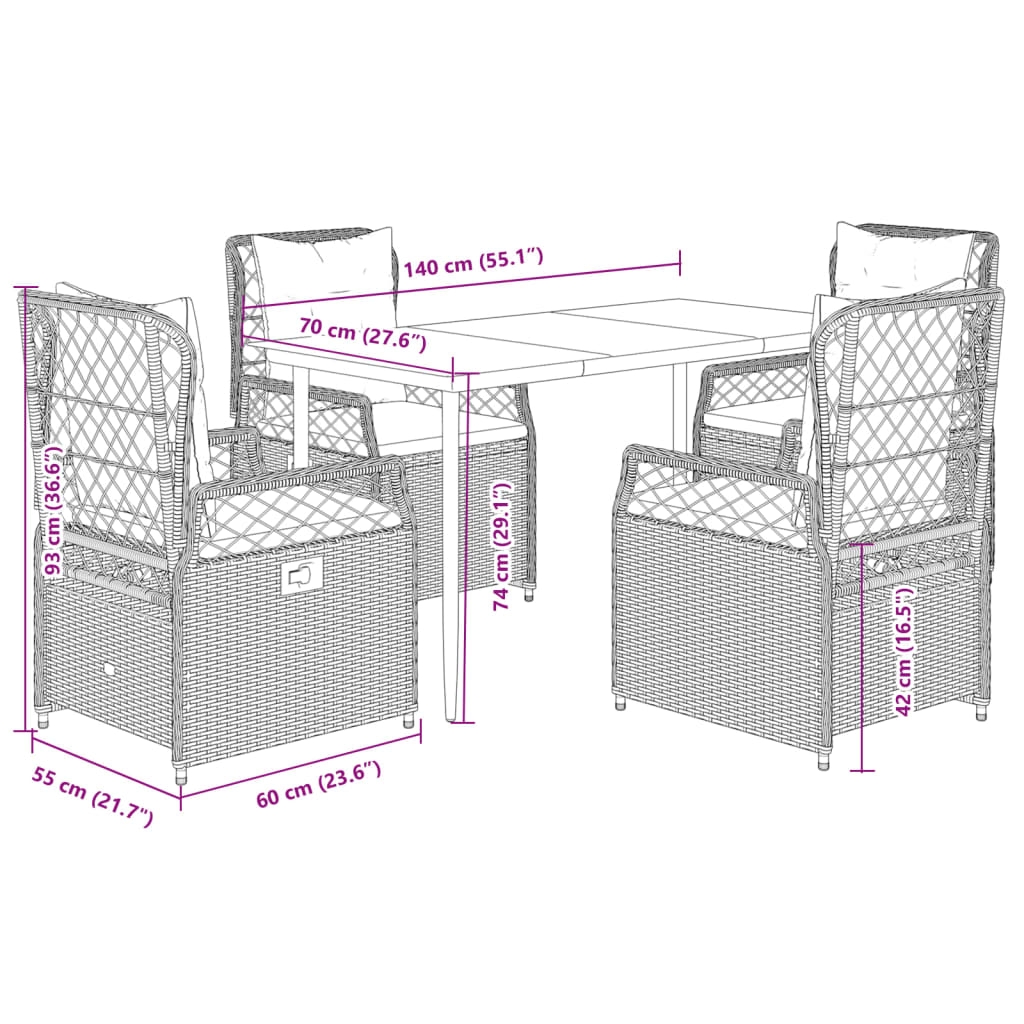 vidaXL 5-dielna záhradná jedálenská súprava a vankúše béžová polyratan