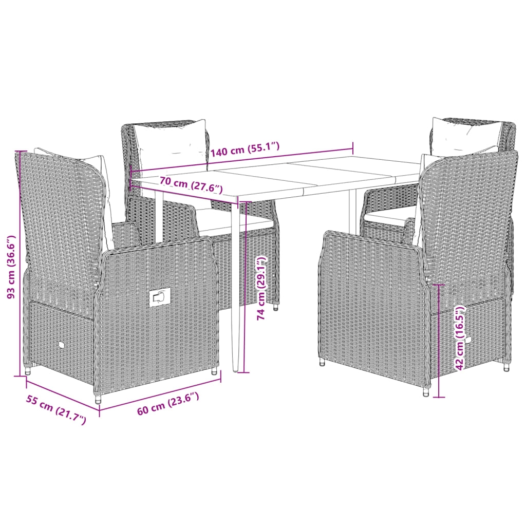 vidaXL 5-dielna záhradná jedálenská súprava a vankúše béžová polyratan