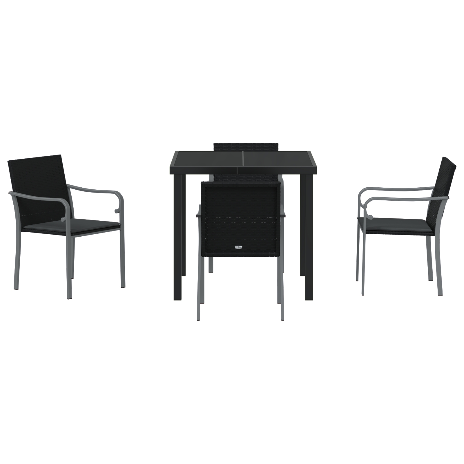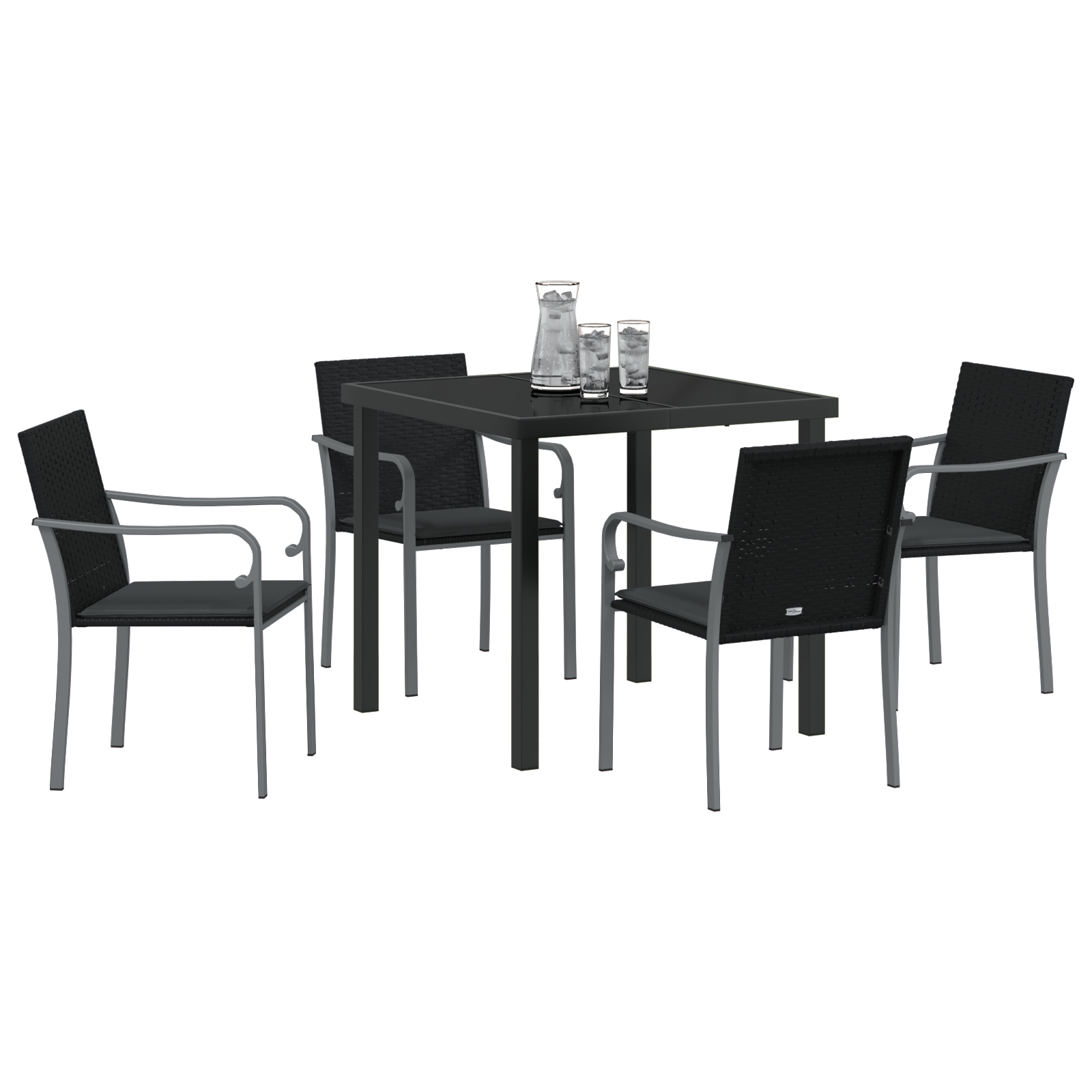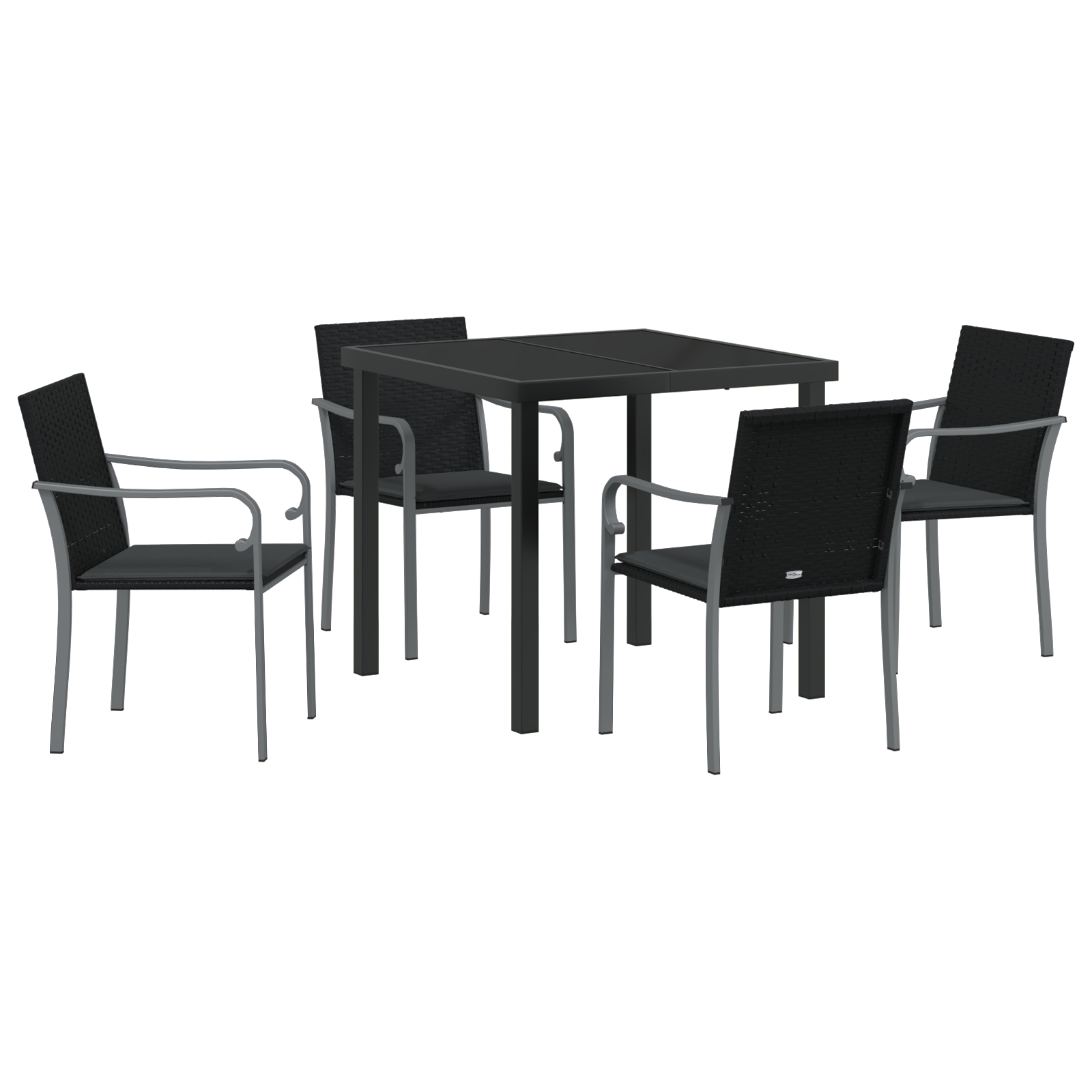 vidaXL 5-dielna záhradná jedálenská súprava s čiernymi vankúšmi z poly ratanu