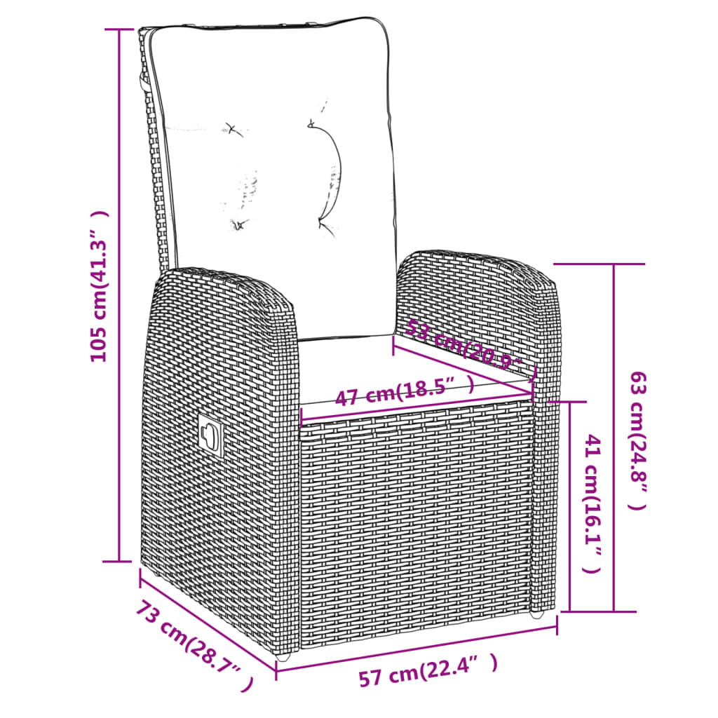 Stôl a stoličky sú pevné a stabilné vďaka oceľovým rámom s práškovým nástrekom, čím sú vhodné pre každodenné vonkajšie používanie. Vďaka vodeodolnému PE ratanu sa stoličky ľahko čistia a sú vhodné na každodenné používanie. Operadlo sa sklápa potiahnutím tlačidla na boku. Vďaka ľahkej konštrukcii sa stoličky ľahko premiestňujú. Hrubo čalúnené sedáky tiež zvyšujú pohodlie. Polyesterové poťahy nenáročné na údržbu je možné zvliecť a vyprať. Hladká sklenená doska stola sa jednoducho čistí vlhkou handričkou a je ideálna na umiestnenie jedál, nápojov a dekoratívnych predmetov.