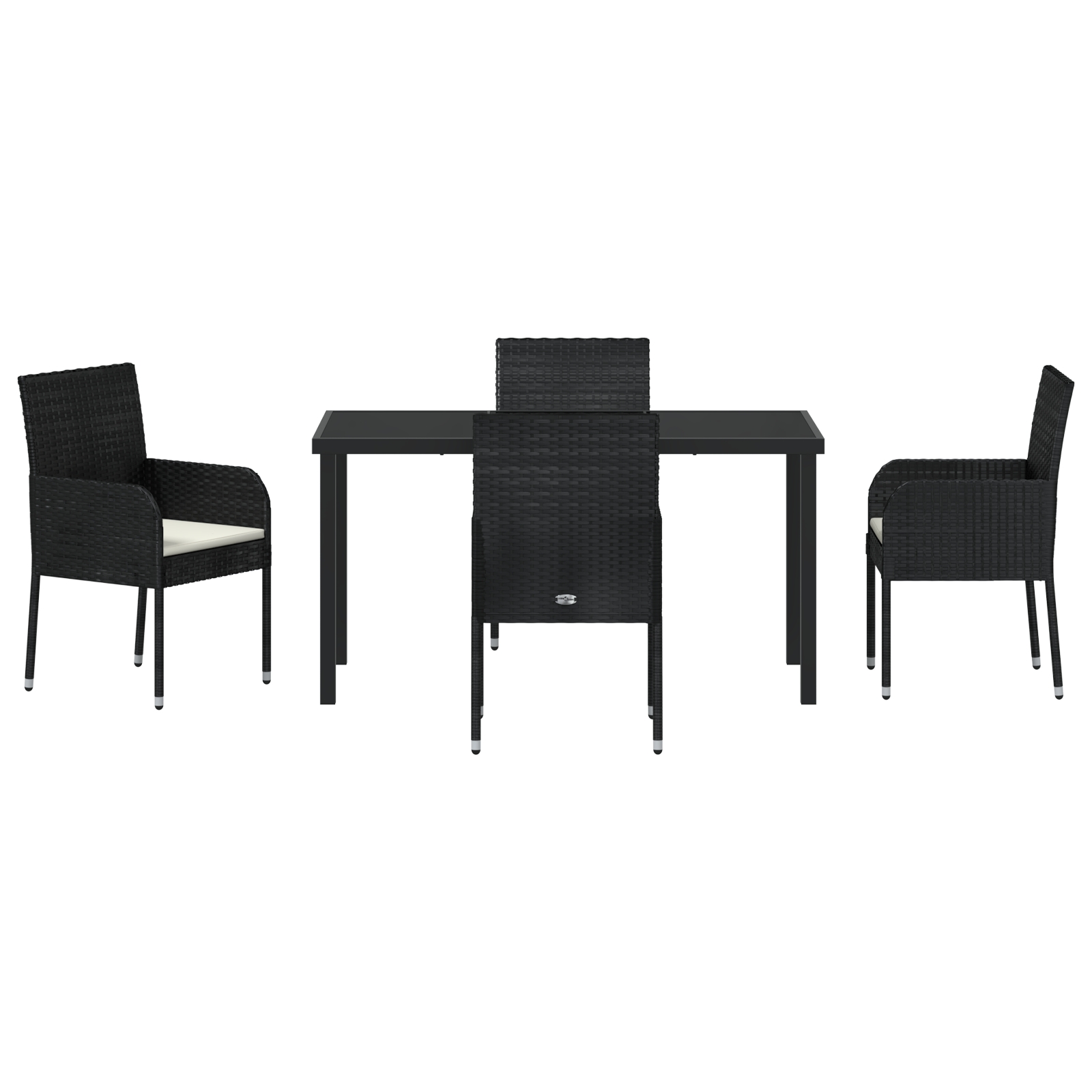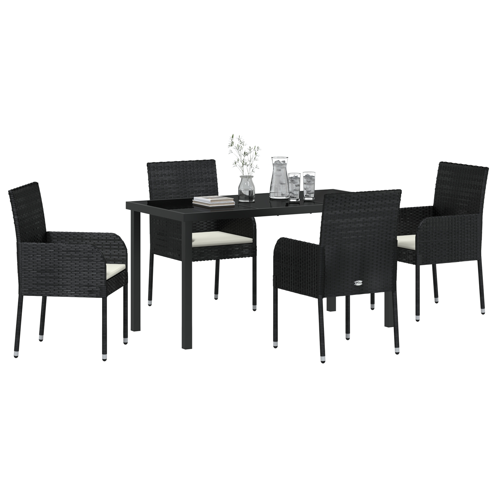 vidaXL 5-dielna záhradná jedálenská súprava s vankúšmi čierna poly ratan