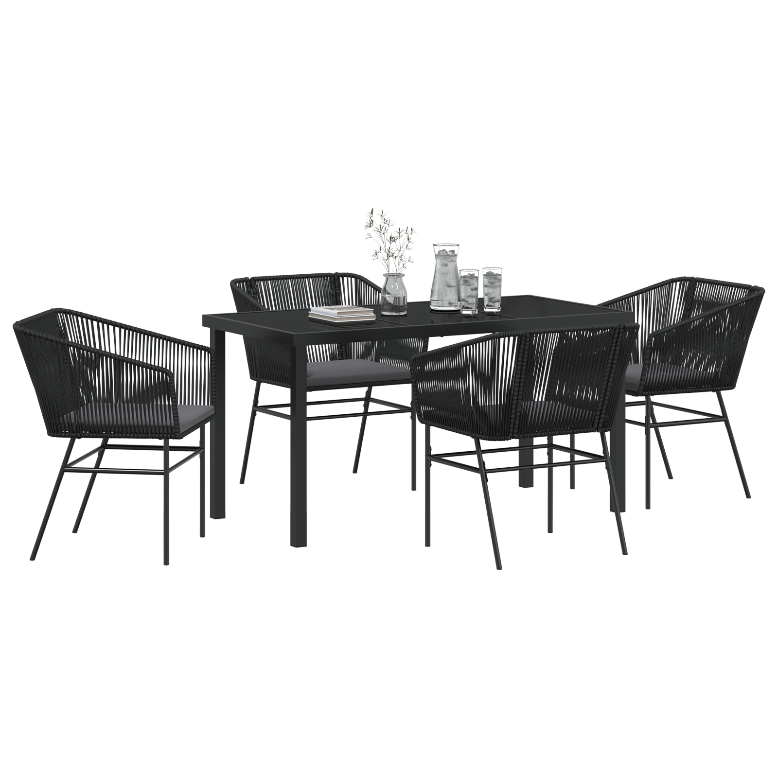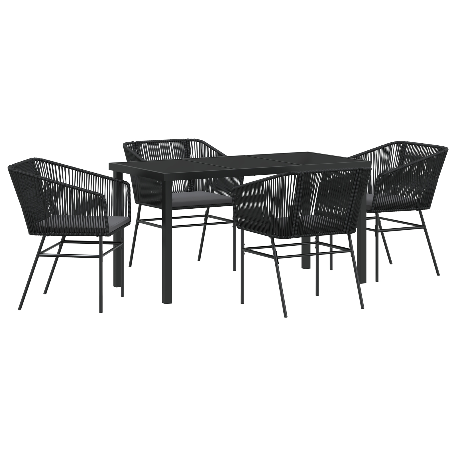 vidaXL 5-dielna záhradná jedálenská súprava s vankúšmi čierna poly ratan