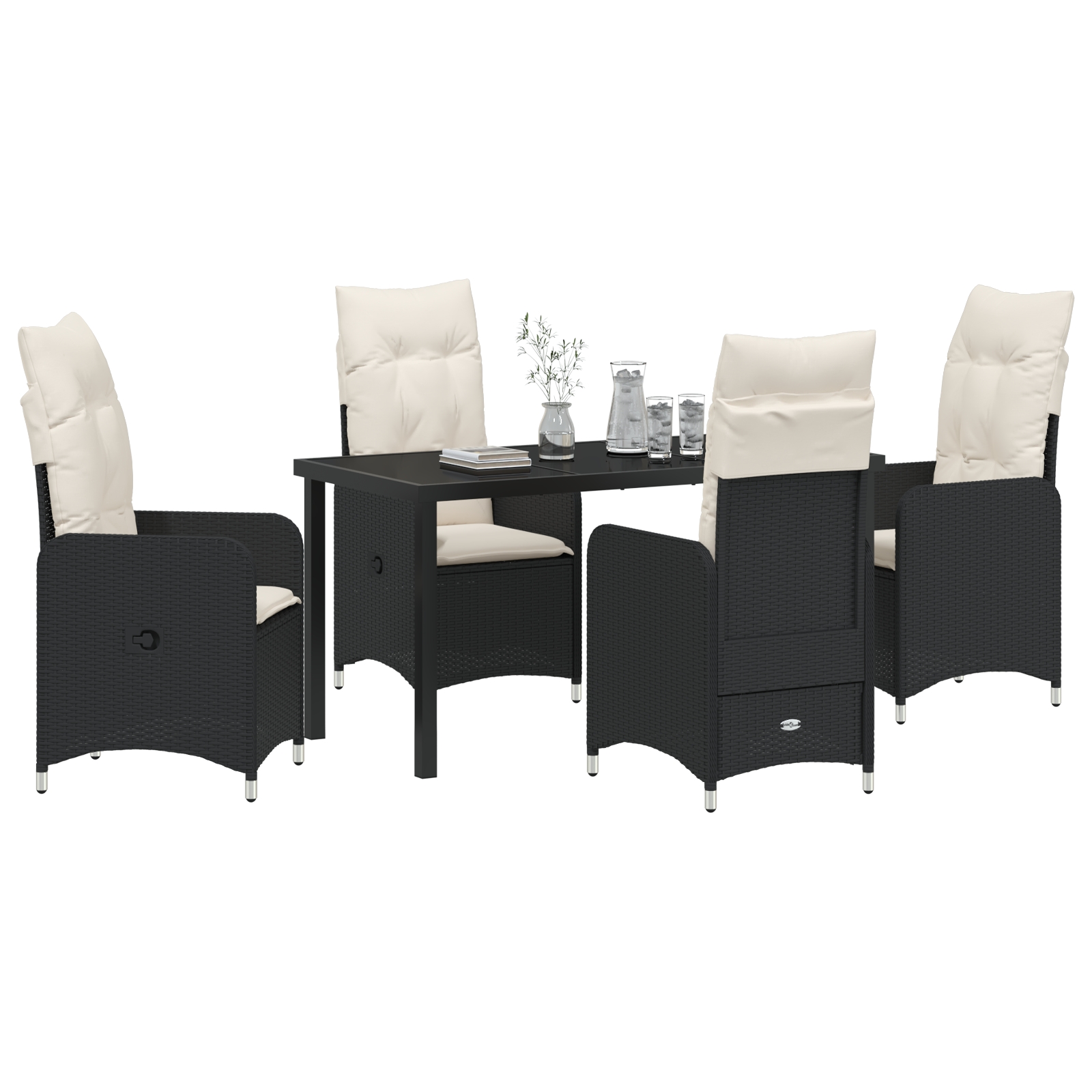 vidaXL 5-dielna záhradná jedálenská súprava s vankúšmi čierna polyratanová