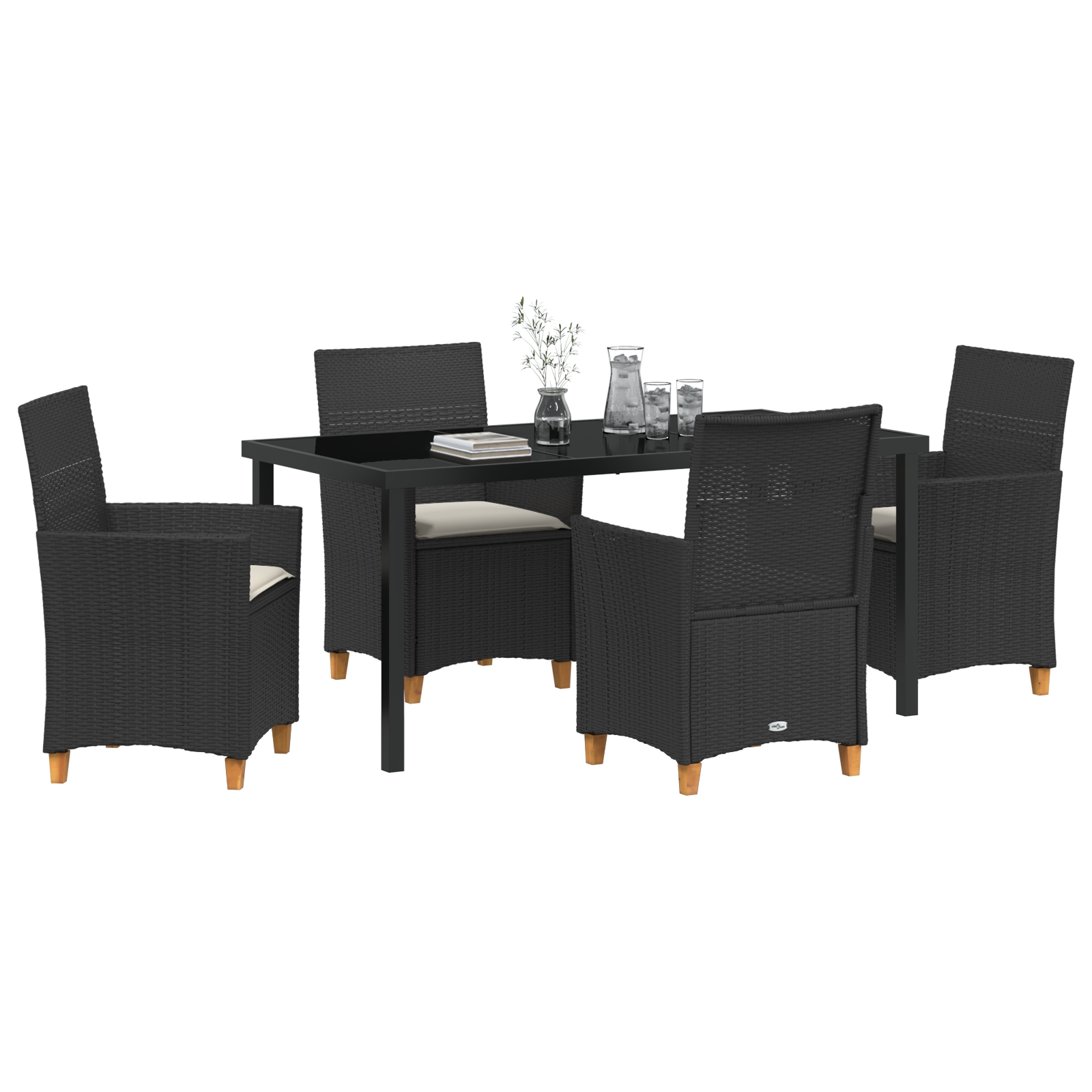 vidaXL 5-dielna záhradná jedálenská súprava s vankúšmi, čierny poly ratan