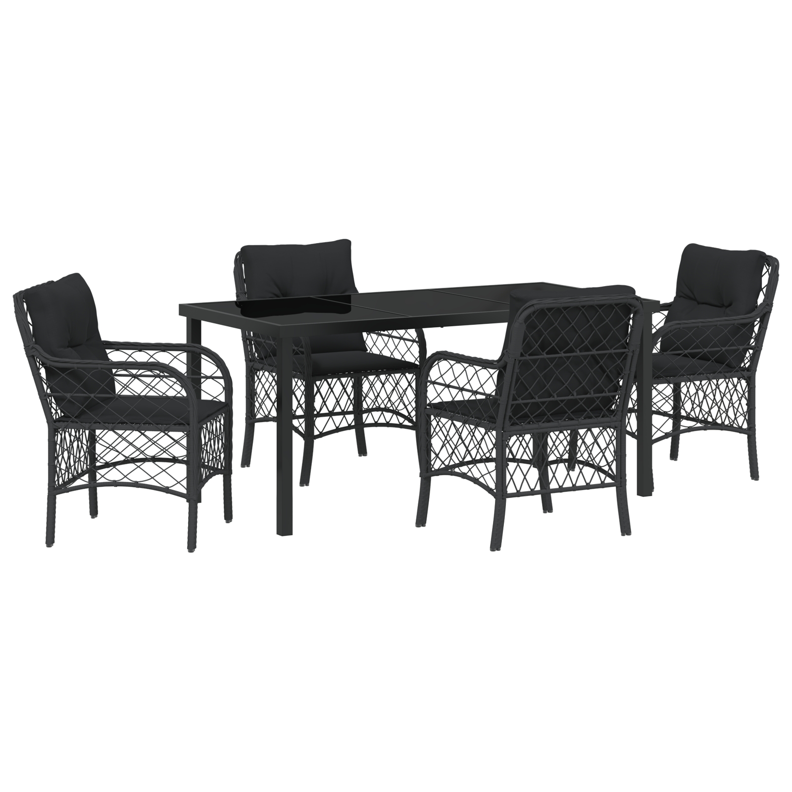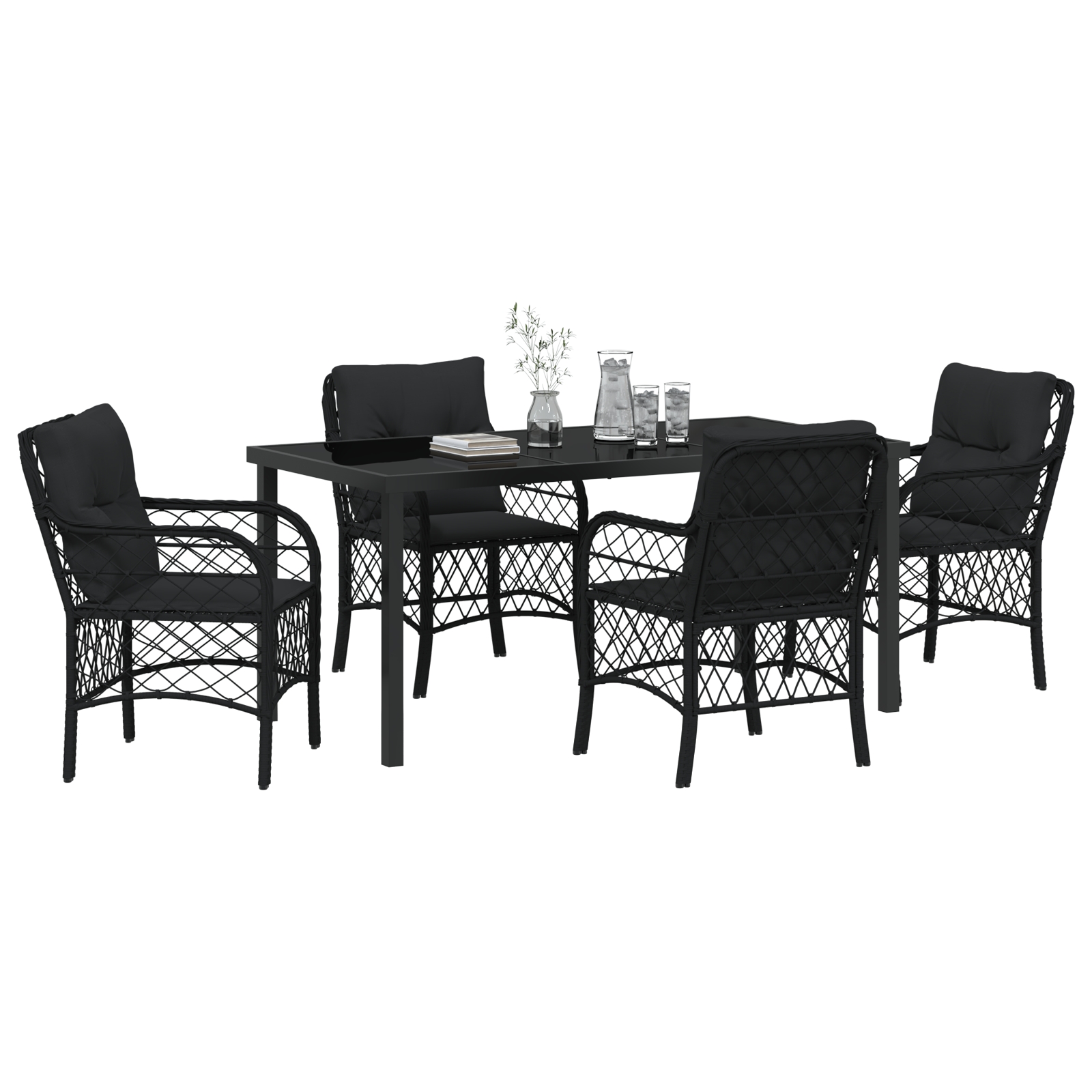 vidaXL 5-dielna záhradná jedálenská súprava s vankúšmi Čierny Polyratan
