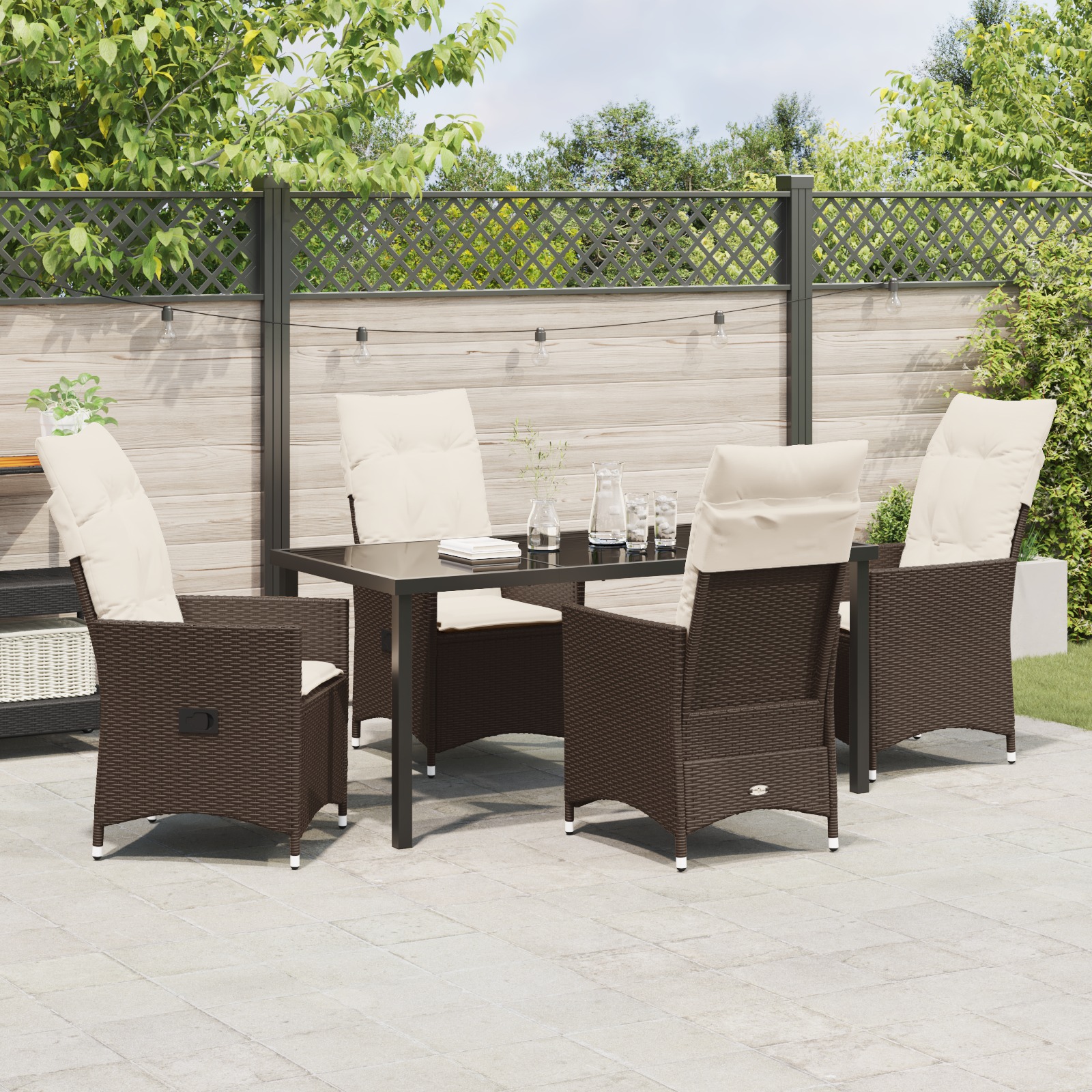 vidaXL 5-dielna záhradná jedálenská súprava s vankúšmi hnedá poly ratan