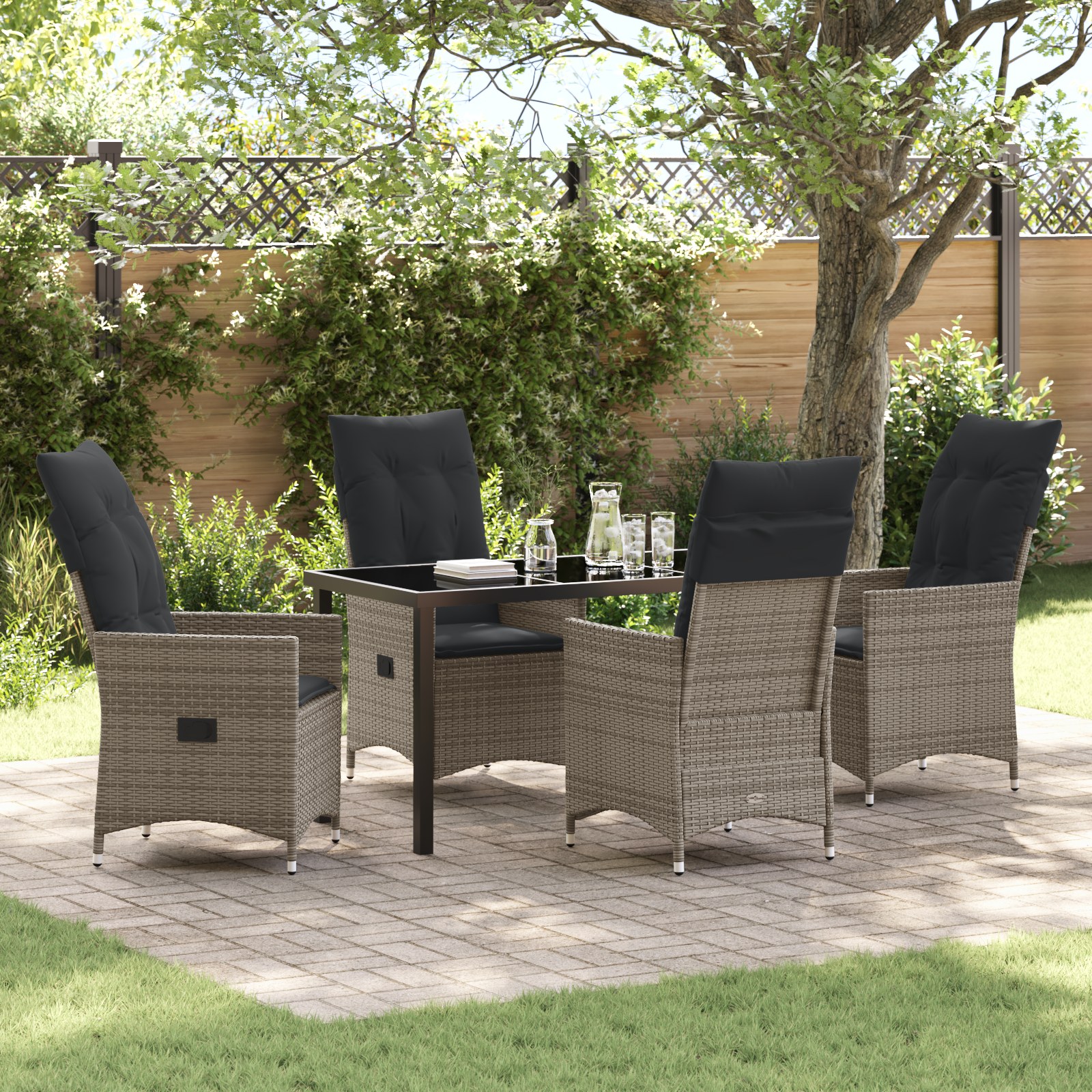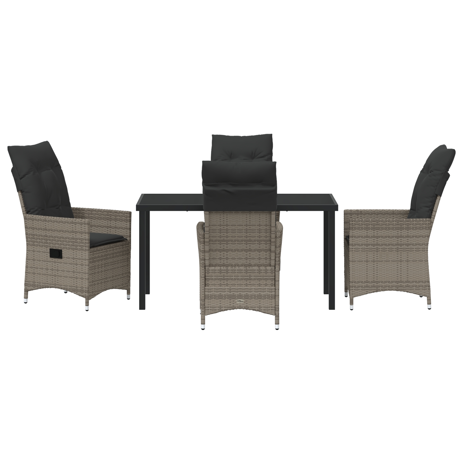 vidaXL 5-dielna záhradná jedálenská súprava s vankúšmi šedý poly ratan