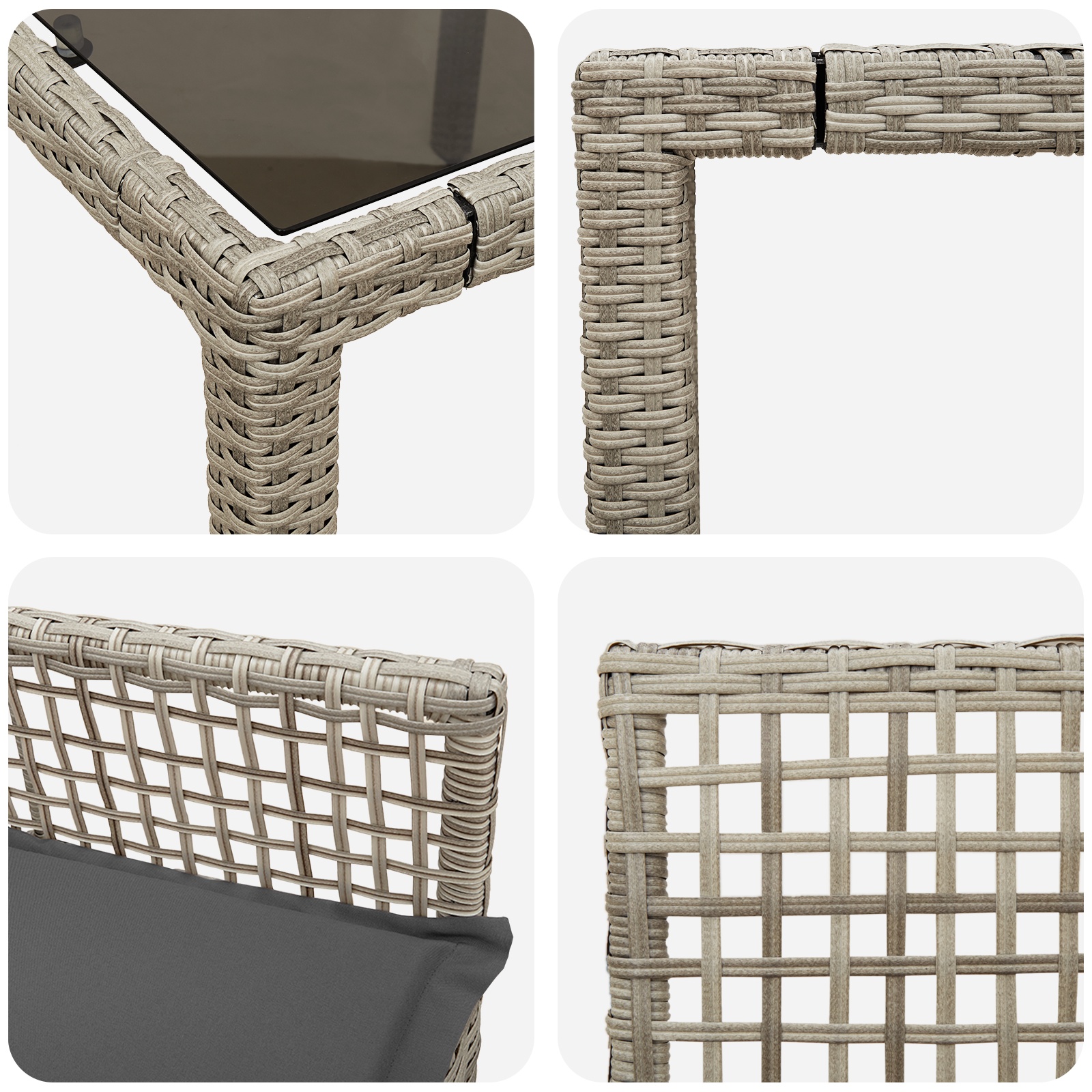 • Odolné materiály: Vyrobené z UV-odolného PE ratanu a tvrdeného skla, zvládne vonkajšie podmienky a stále vyzerá skvelo. Táto odolnosť ti zabezpečí roky radosti bez nutnosti častých výmen.