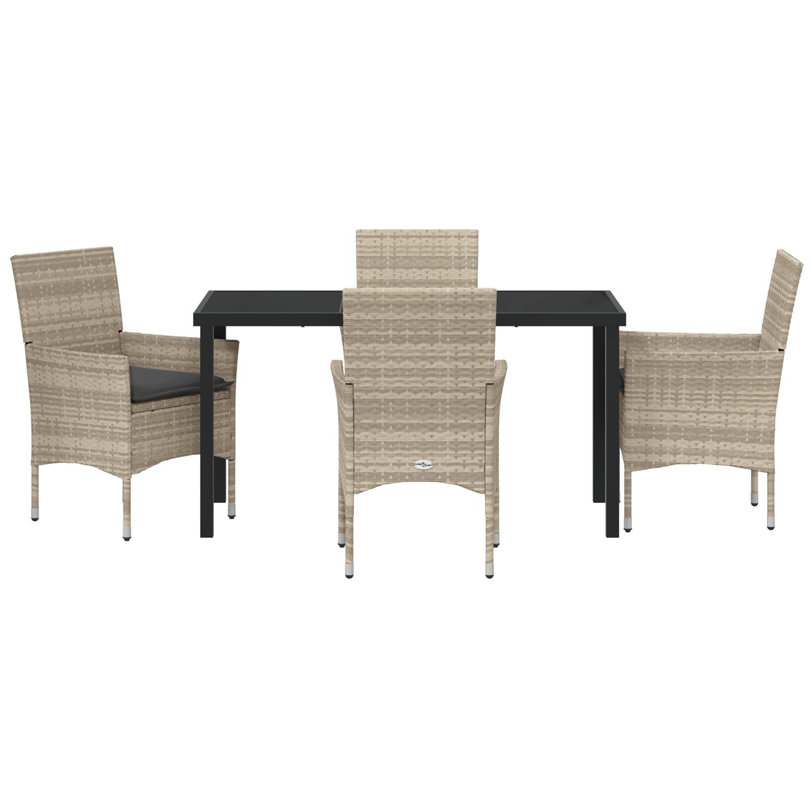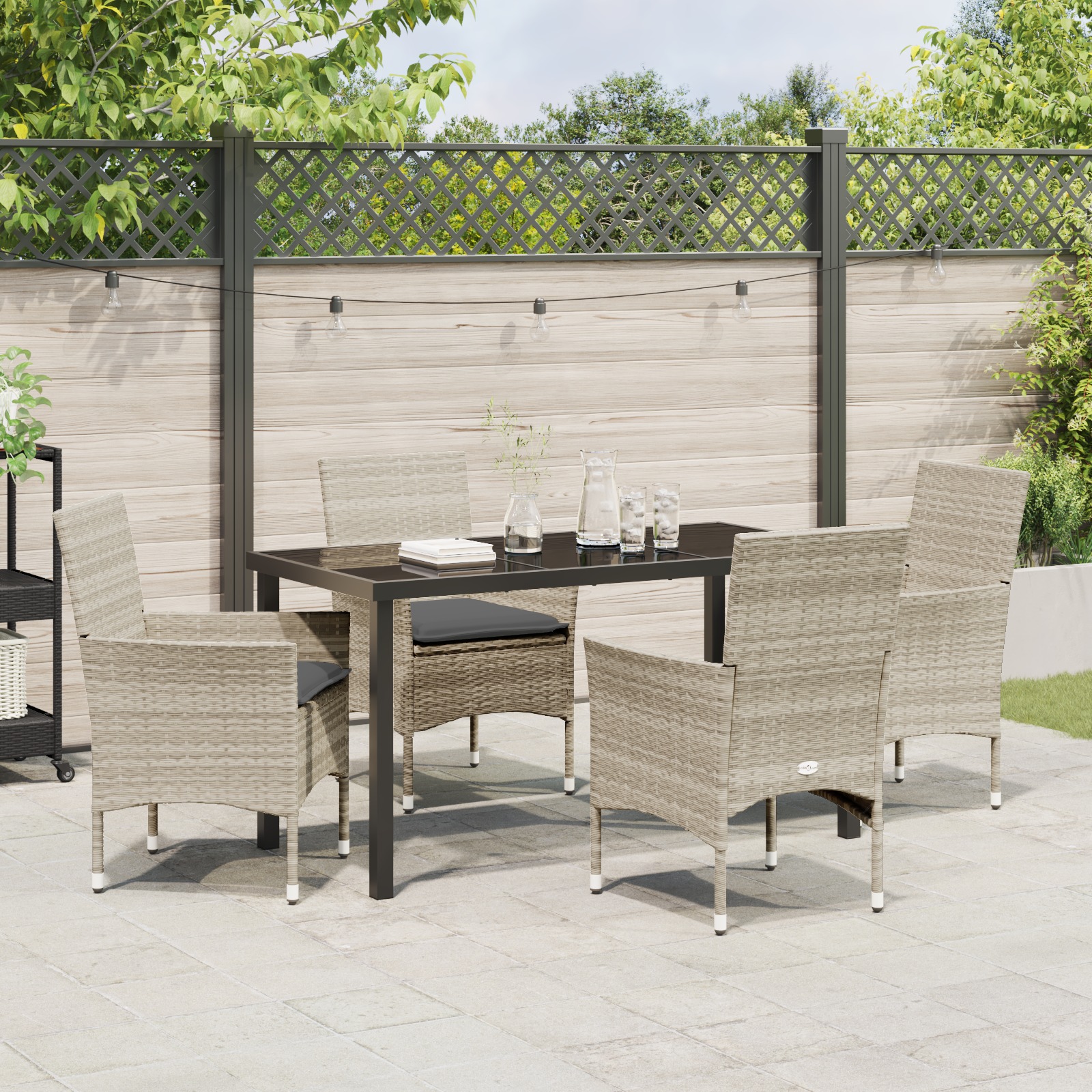 vidaXL 5-dielna záhradná jedálenská súprava s vankúšmi svetlosivý poly ratan, vidaXL záhradný stôl čierny 140x80x73 cm tvrdené sklo