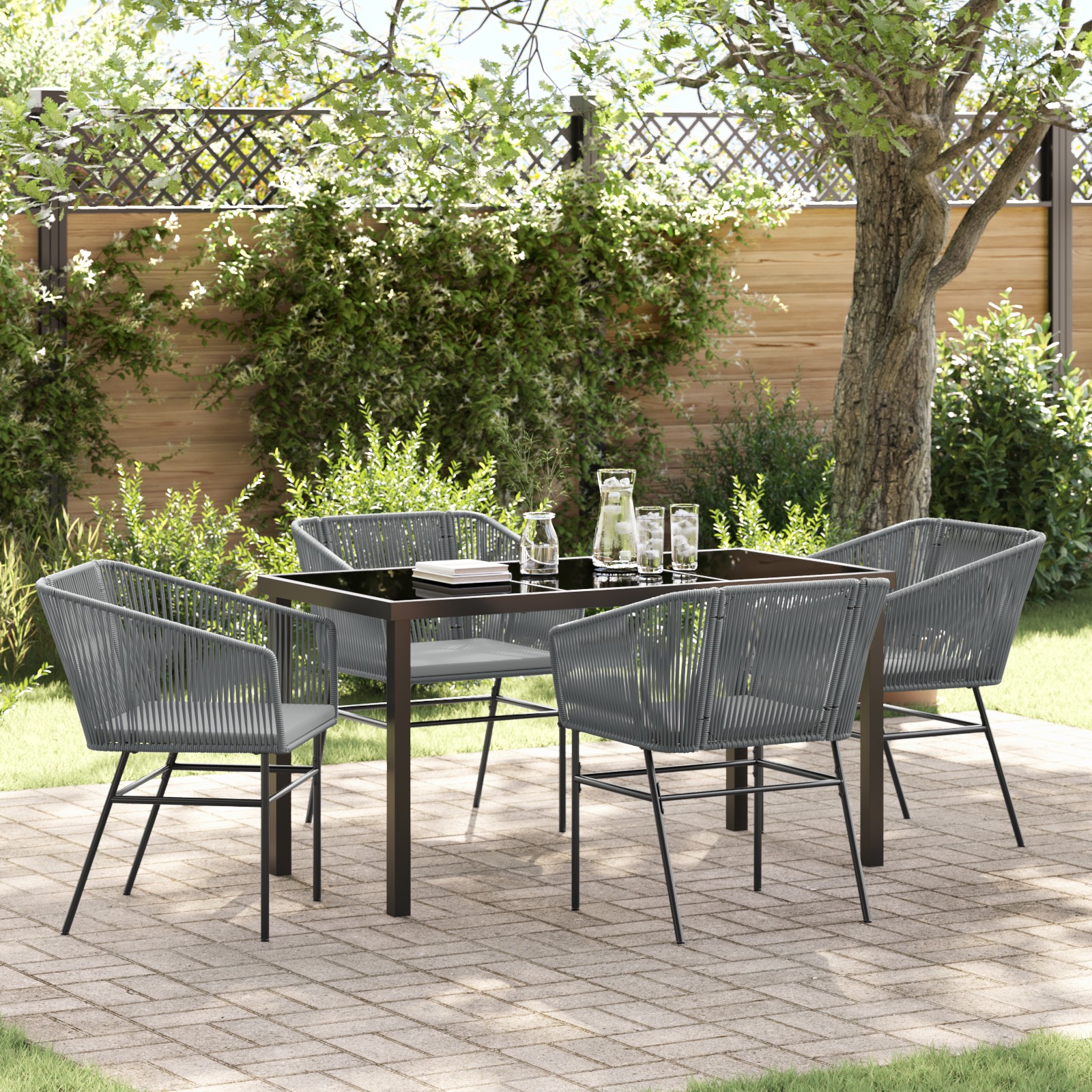 vidaXL 5-dielna záhradná jedálenská súprava so vankúšmi šedý poly ratan