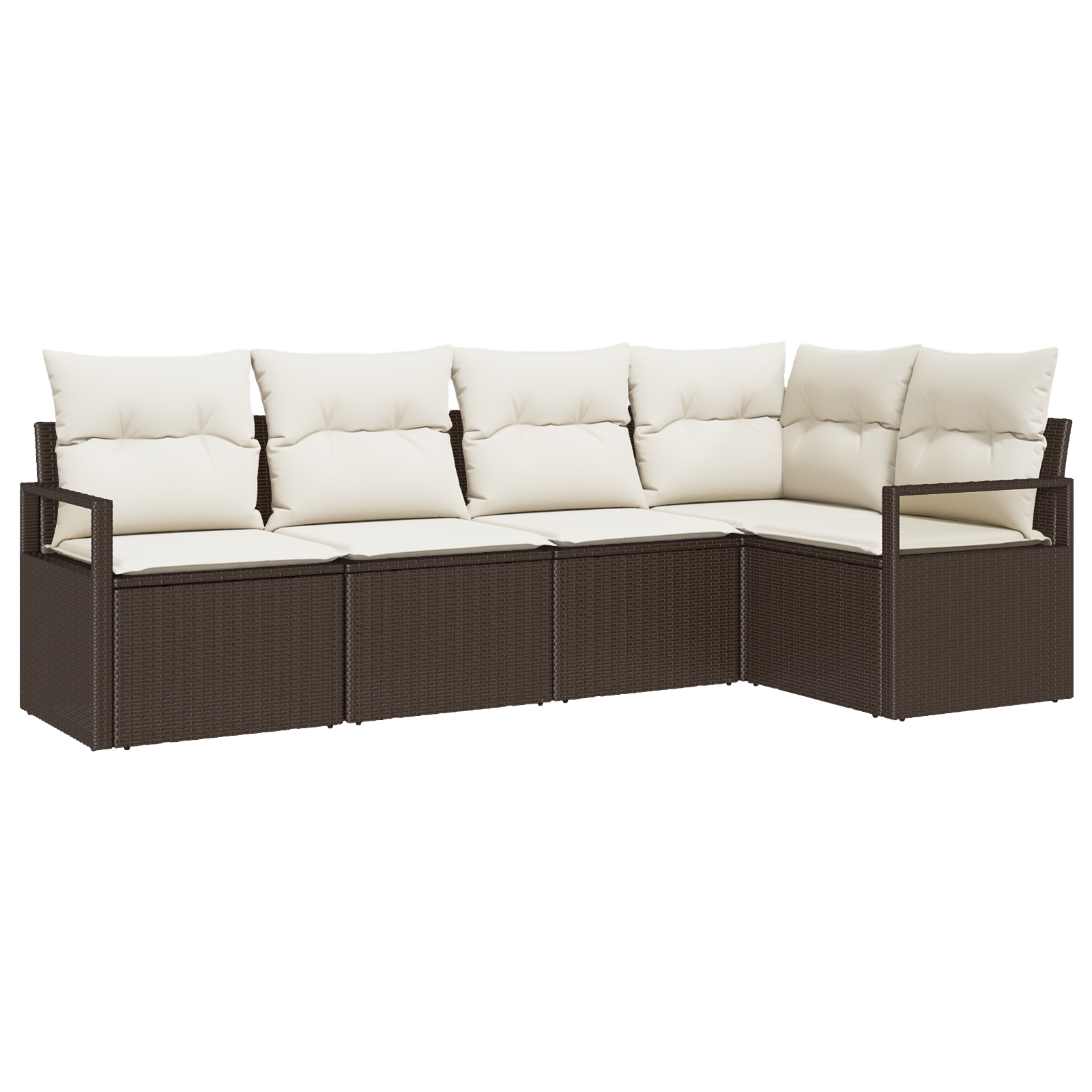 vidaXL 5-dielna záhradná pohovka s vankúšmi v hnedej poly ratanu