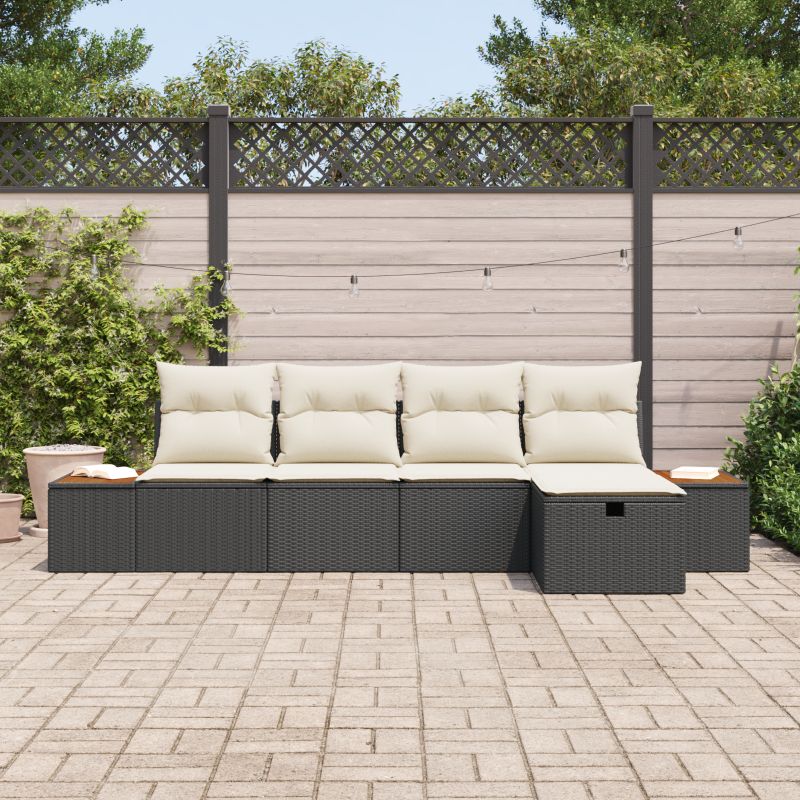 vidaXL 5-dielna záhradná pohovka so vankúšmi Čierna Poly Ratan vidaXL 5-dielna záhradná pohovka so vankúšmi Čierna Poly Ratan