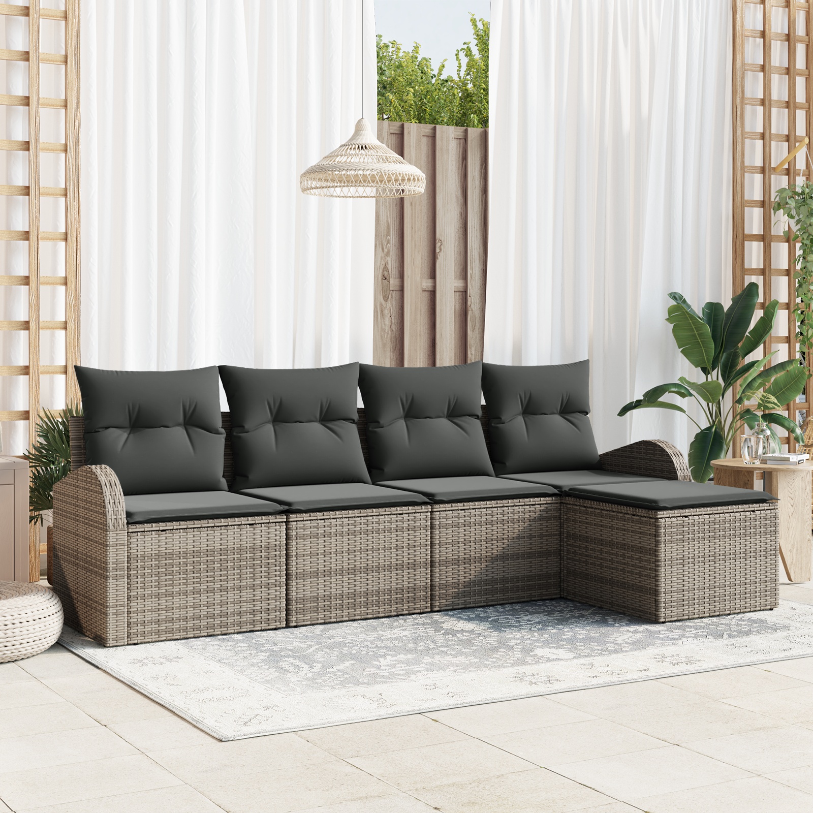 vidaXL 5-dielna záhradná pohovka so vankúšmi sivého poly ratanu