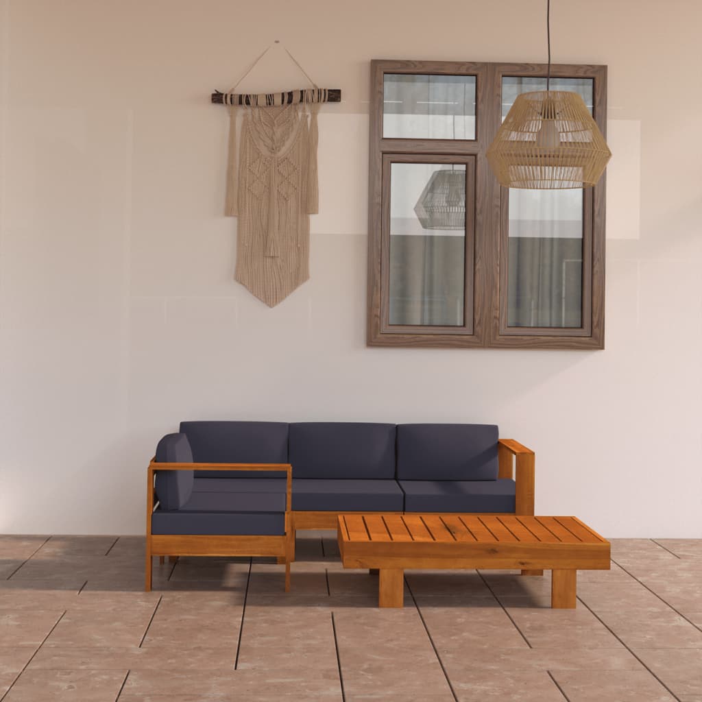 Vonkajšia sedacia súprava je starostlivo vyrobená z masívneho dreva, vďaka čomu je robustná, odolná a vhodná na vonkajšie použitie. Husto polstrované vankúše na sedadlo a operadlo poskytujú extra pohodlie v čase vášho oddychu. Povrch upravený olejom sa ľahko čistí vlhkou handričkou. Robustná stolová doska je navyše ideálna na umiestnenie nápojov a jedál, ktoré chcete mať na dosah.