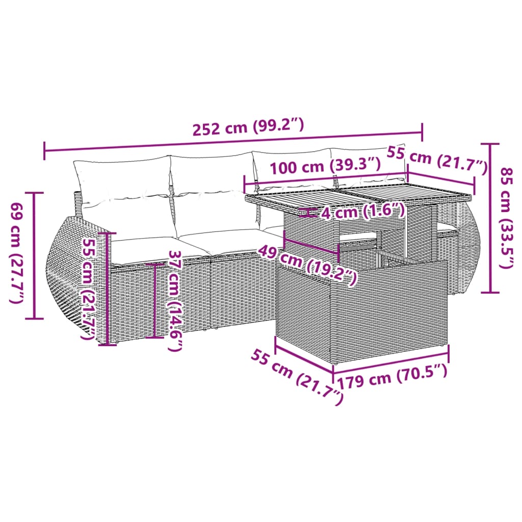 vidaXL 5-dielna záhradná súprava pohoviek s vankúšmi béžová polyratan