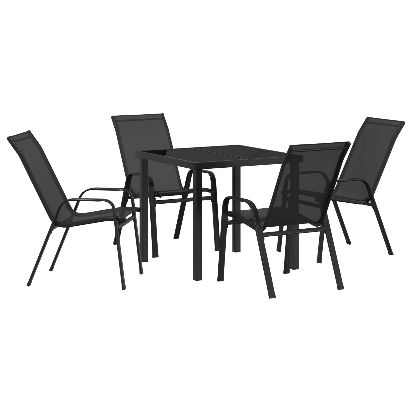 vidaXL 5-dielny čierny záhradný jedálenský set z textilu a ocele