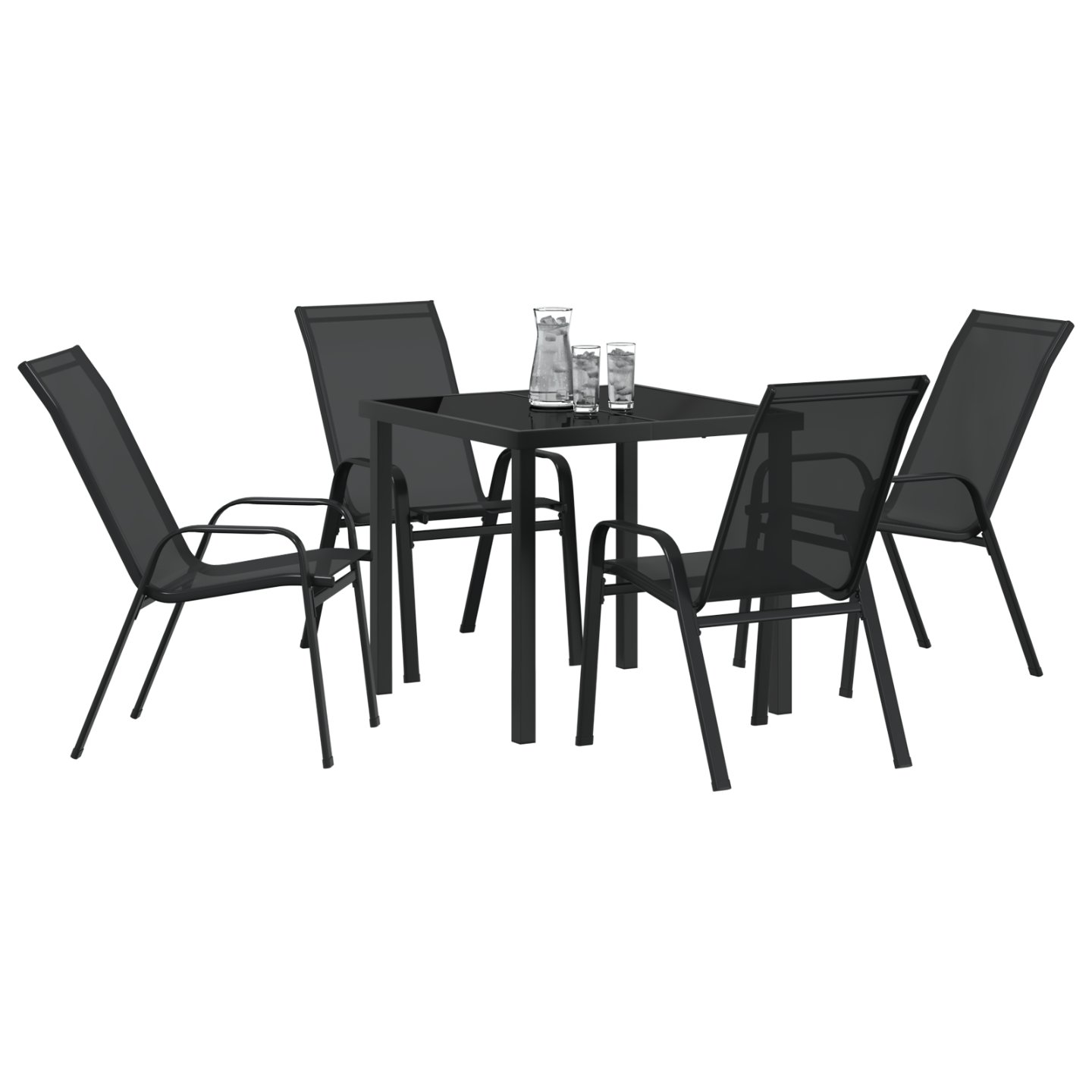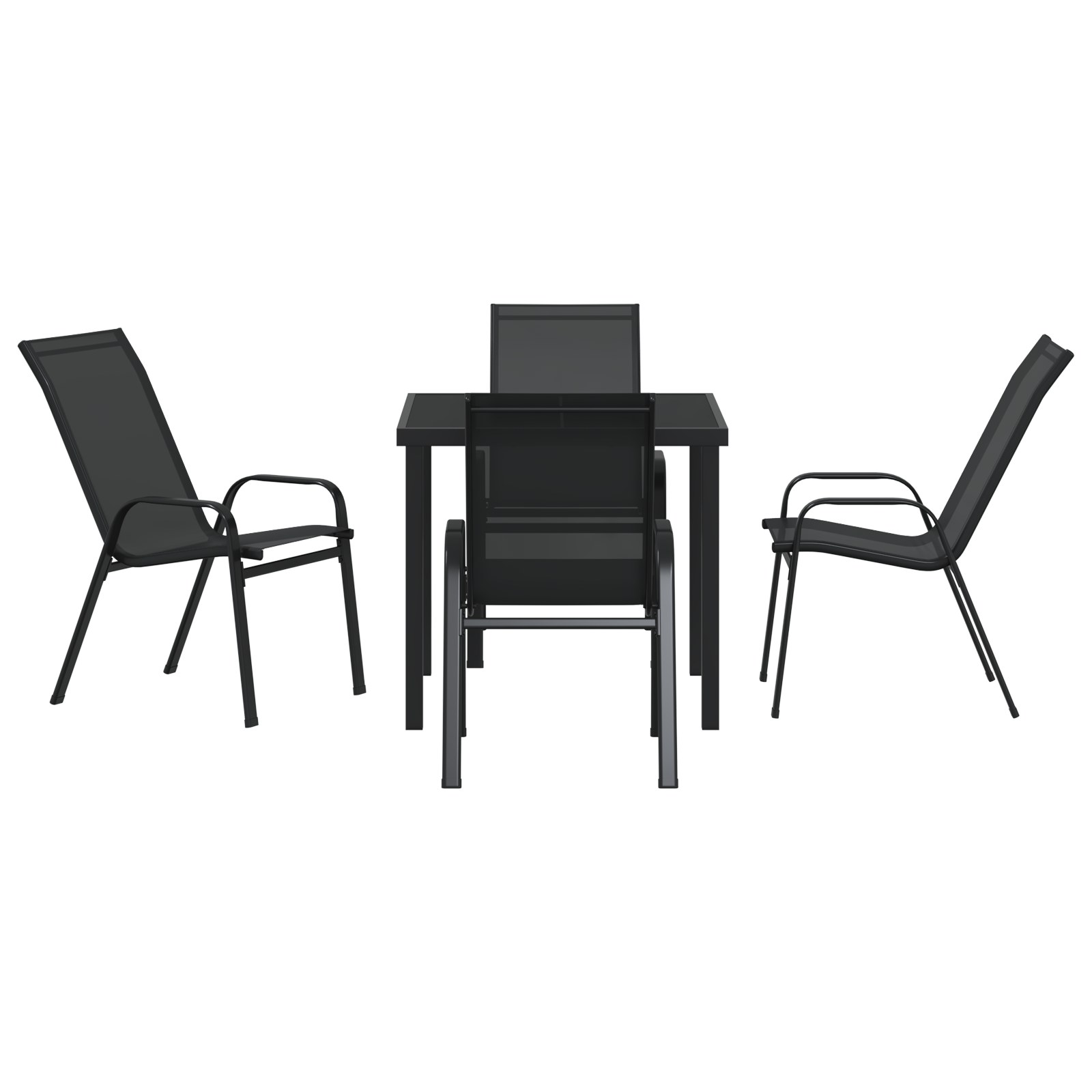 Tento 5-dielny záhradný jedálenský set vytvára skvelé vonkajšie zážitky, kde sa štýl stretáva s praktickým použitím. Jeho elegantný čierny oceľový dizajn oživí každé vonkajšie posedenie a je ideálny na jedlo alebo len tak posedieť s priateľmi a rodinou.