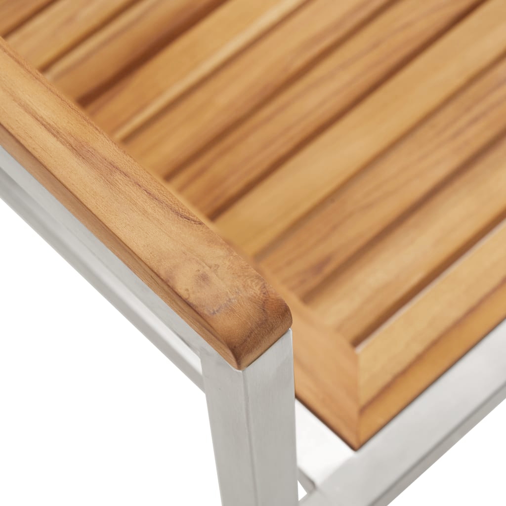 • Odolné materiály: Vyrobené z masívneho teakového dreva a pevného rámu s práškovou úpravou, tento jedálenský set je navrhnutý tak, aby prežil vonkajšie podmienky, takže si môžete byť istí jeho dlhovekosťou v každom počasí.