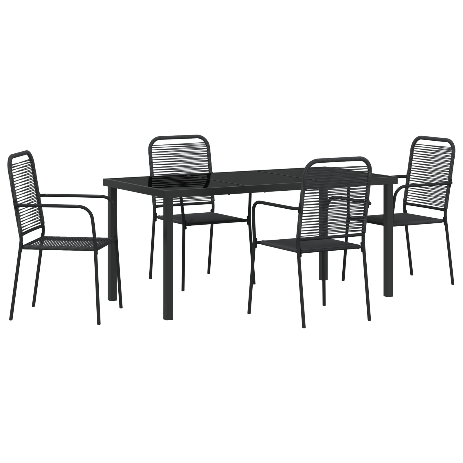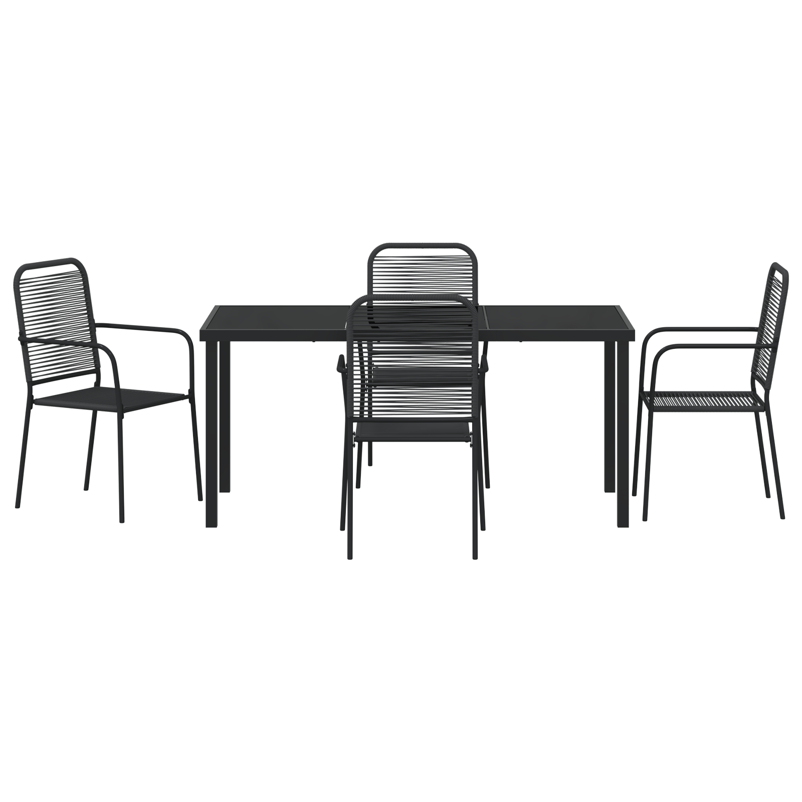 vidaXL 5-dielny záhradný jedálenský set čierny bavlnené lano a oceľ