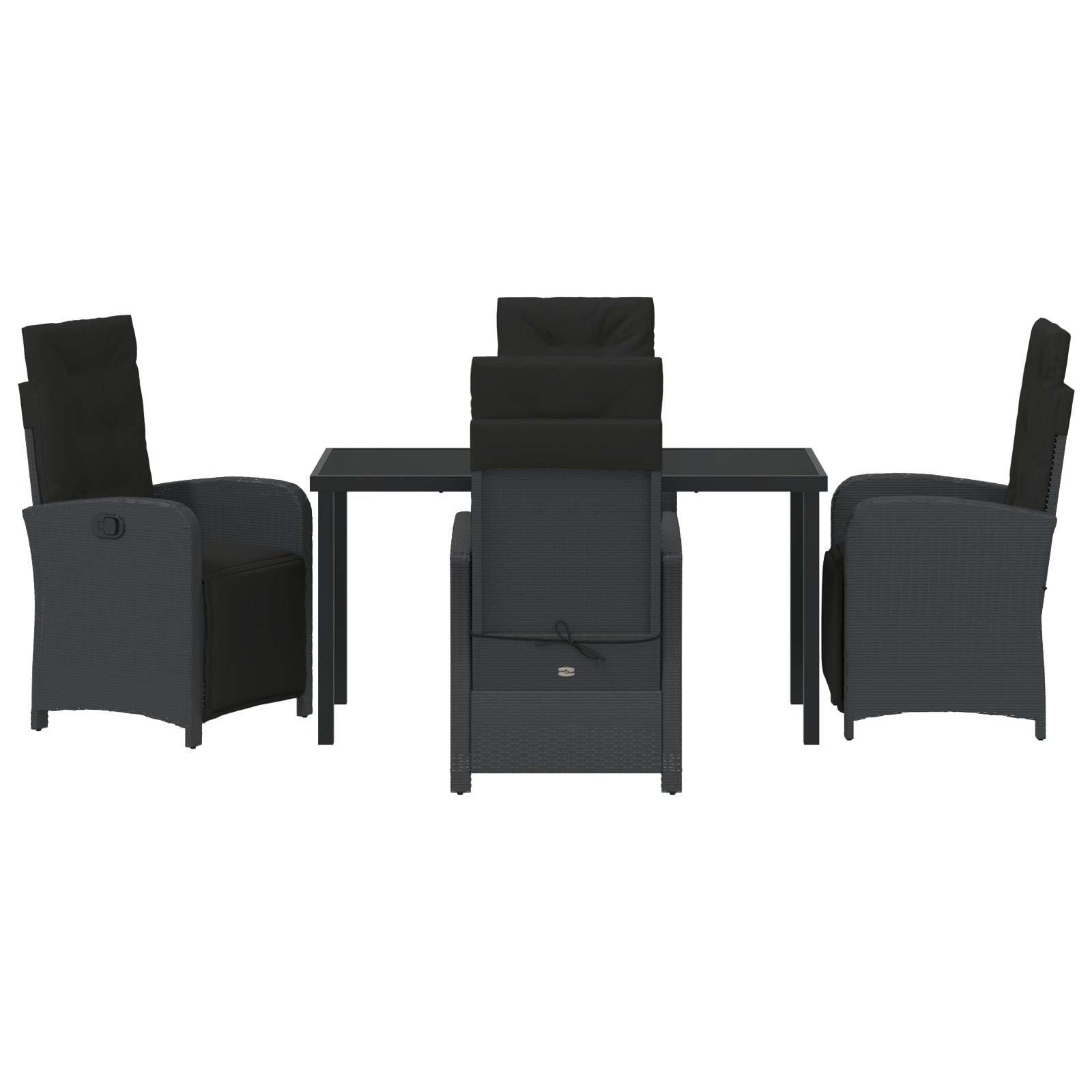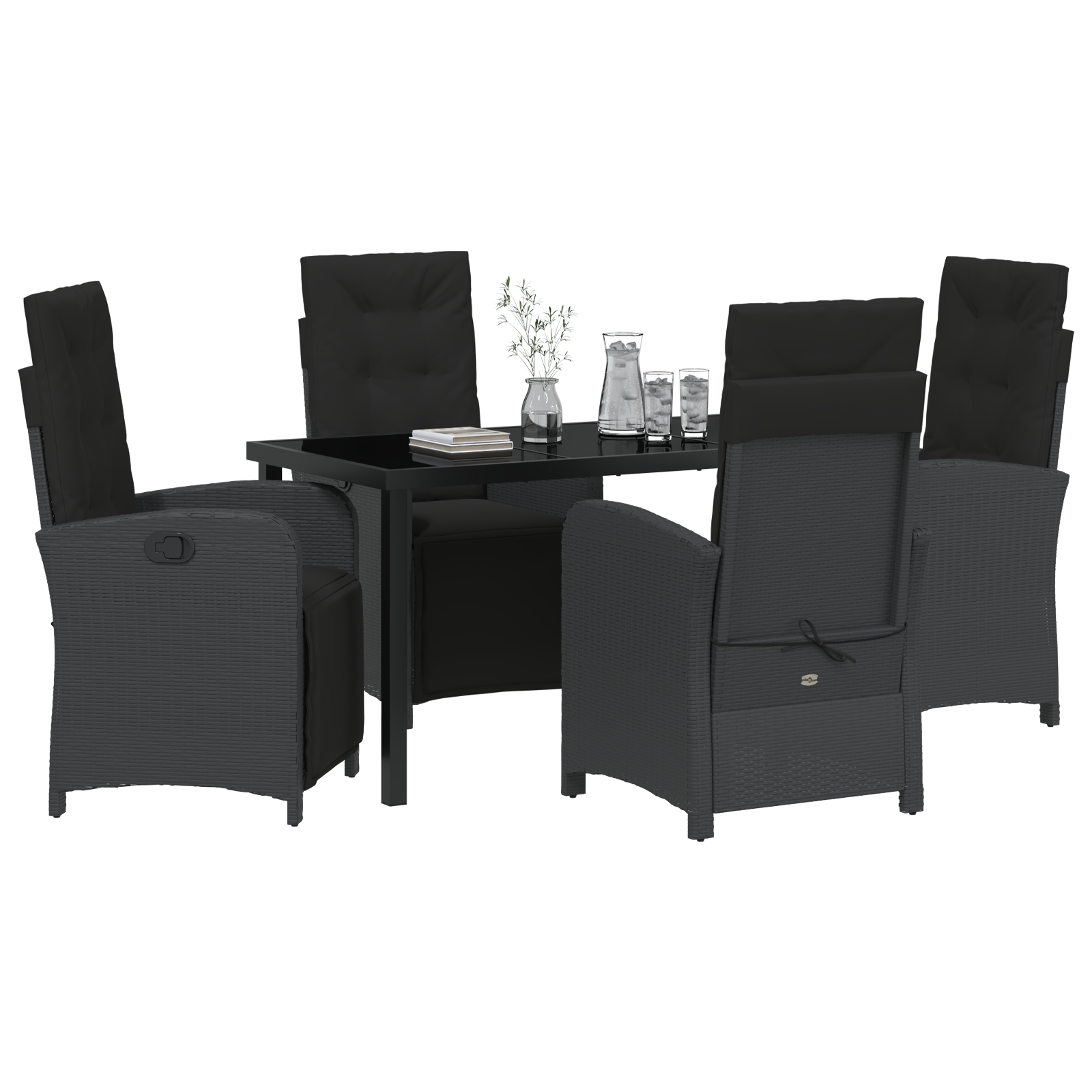 vidaXL 5-dielny záhradný jedálenský set s poťahmi čierny poly ratan, vidaXL záhradný stôl čierny 140x80x73 cm temperované sklo