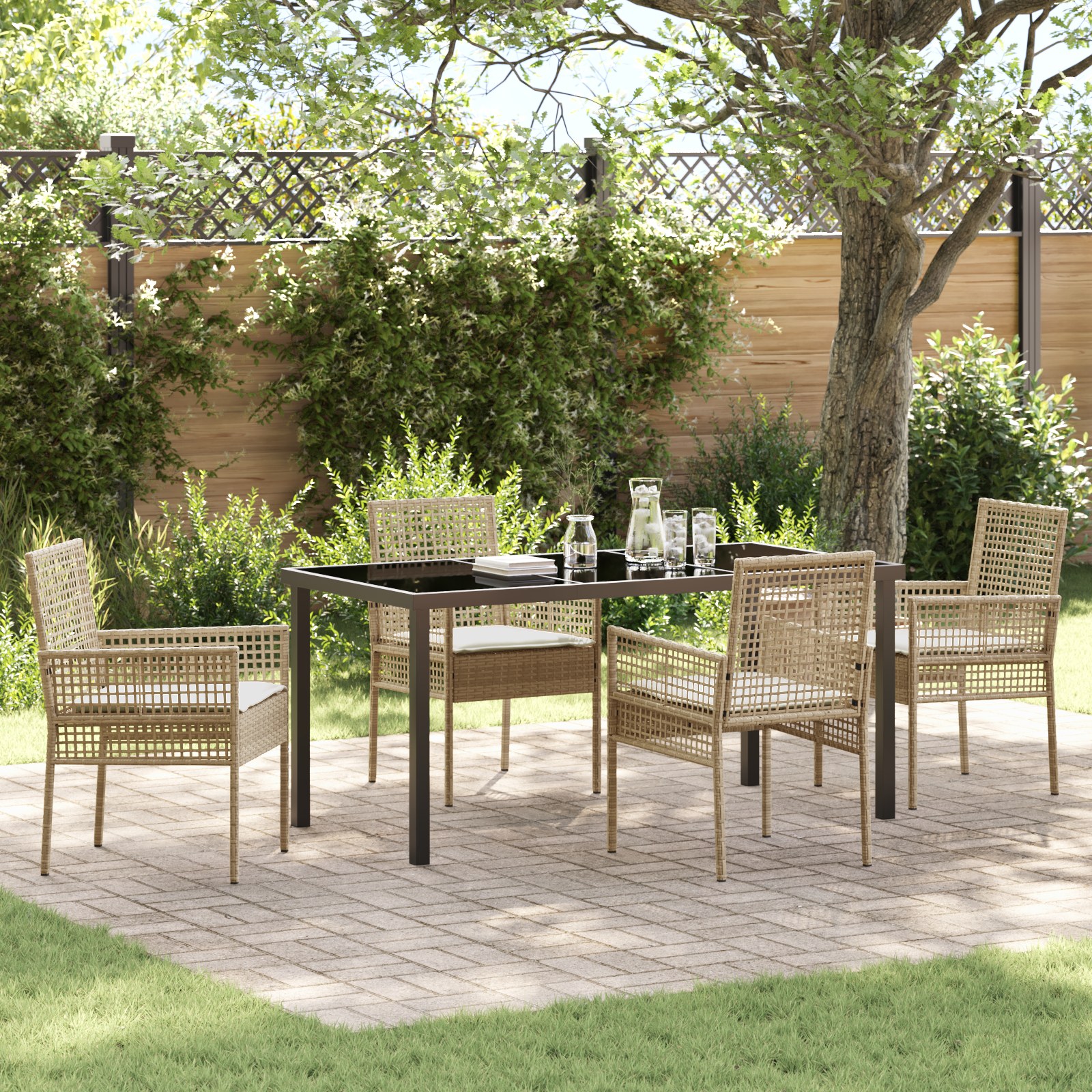 vidaXL 5-dielny záhradný jedálenský set s vankúšmi Béžový Poly Ratan