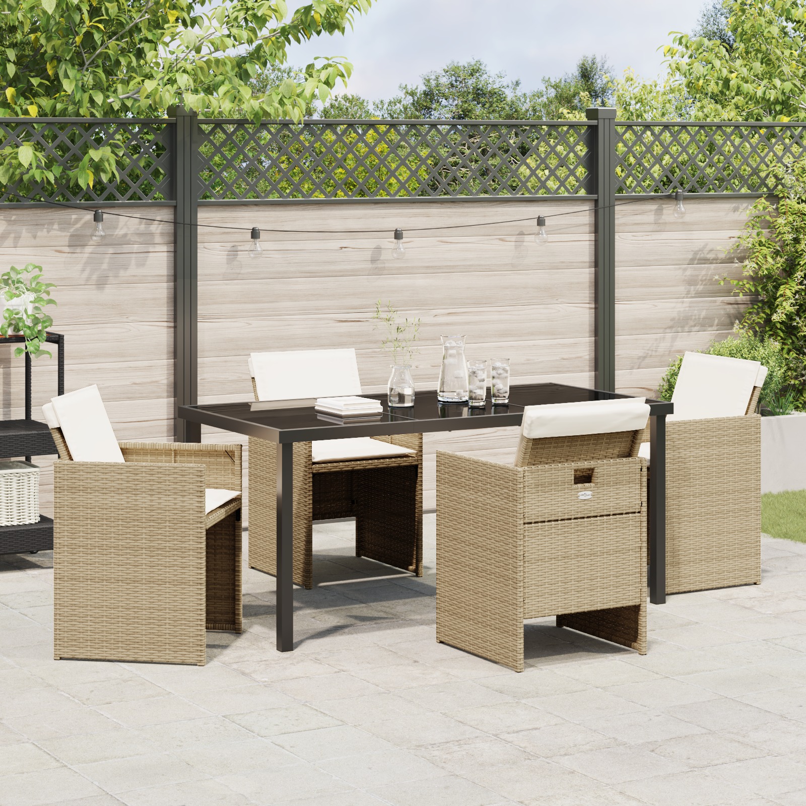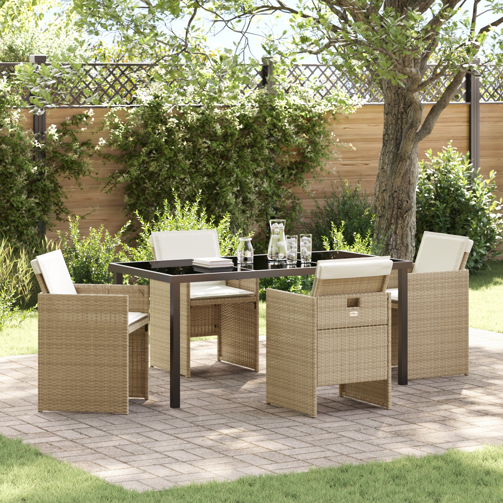 vidaXL 5-dielny záhradný jedálenský set s vankúšmi béžový poly ratan