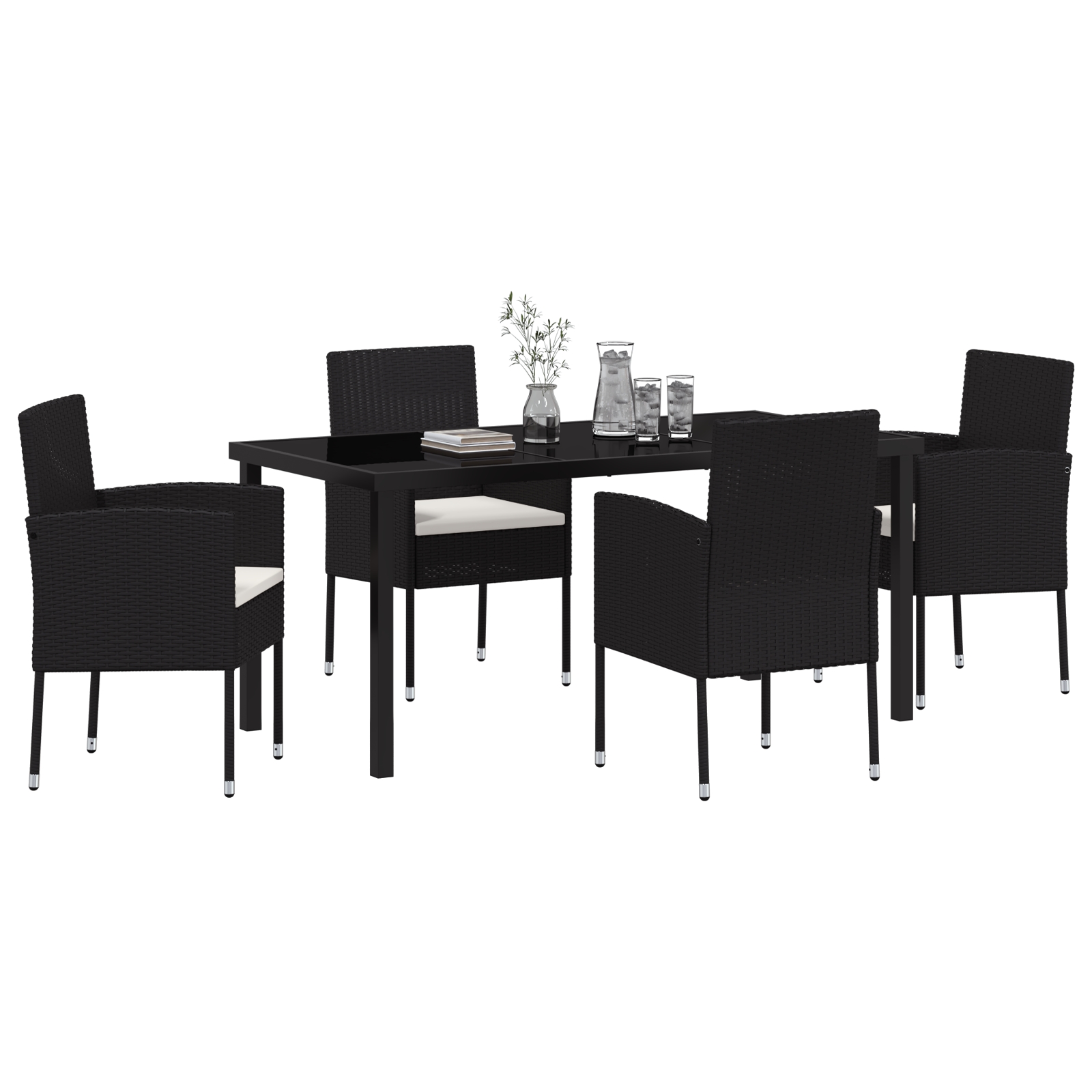vidaXL 5-dielny záhradný jedálenský set s vankúšmi čierny poly ratan