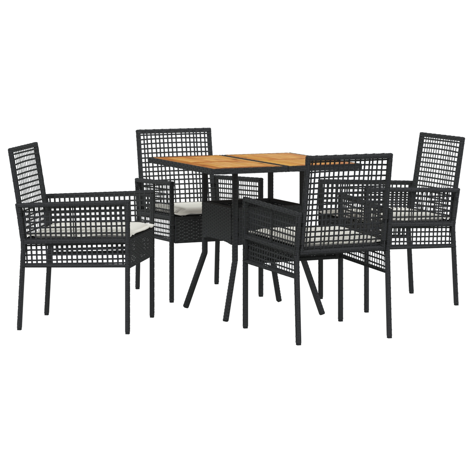 vidaXL 5-dielny záhradný jedálenský set s vankúšmi, čierny poly ratan