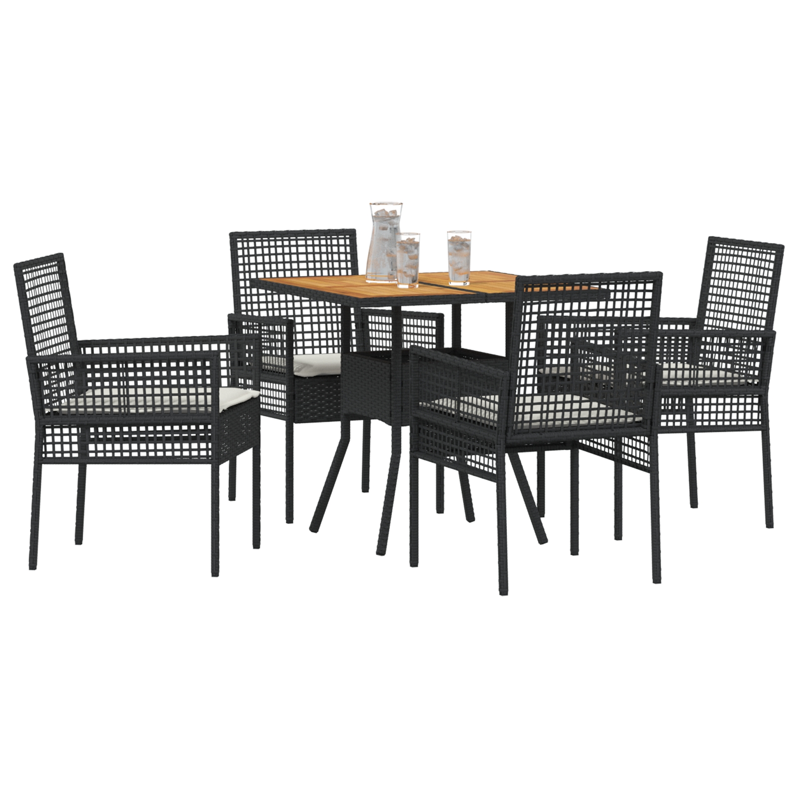 Tento vonkajší jedálenský stôl a stoličky kombinujú moderný vzhľad s praktickosťou, ideálne na stretávanie sa vonku vo tvojej záhrade alebo na balkóne. Elegantný dizajn s prírodným dreveným vrchom a pevným ratanovým rámom vytvára skvelé miesto na jedlo a relax.