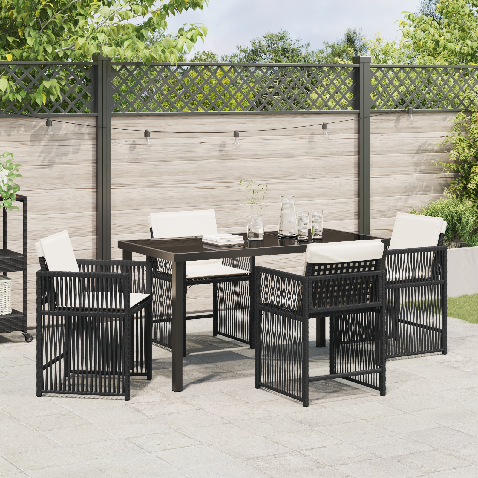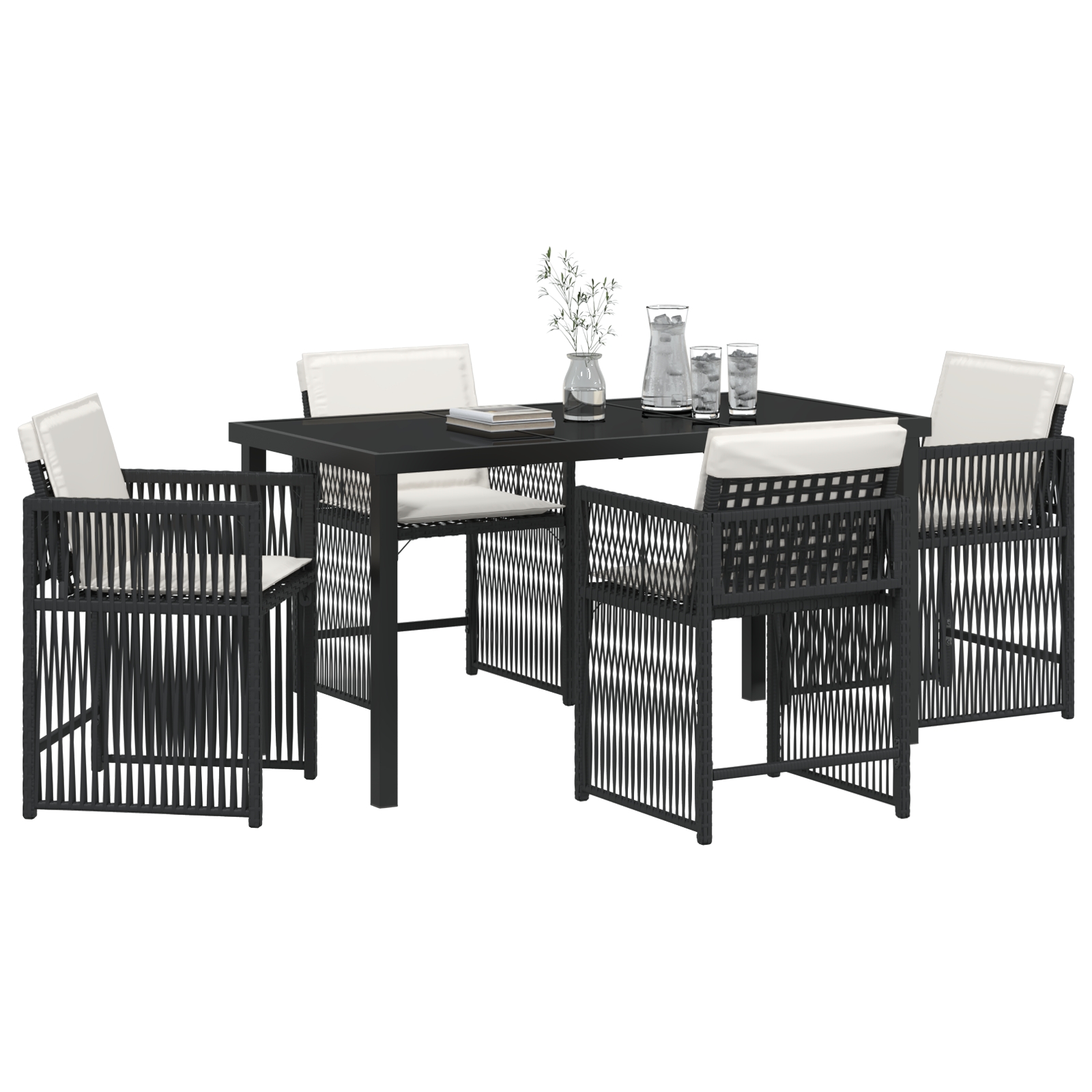 vidaXL 5-dielny záhradný jedálenský set s vankúšmi čierny polyratan