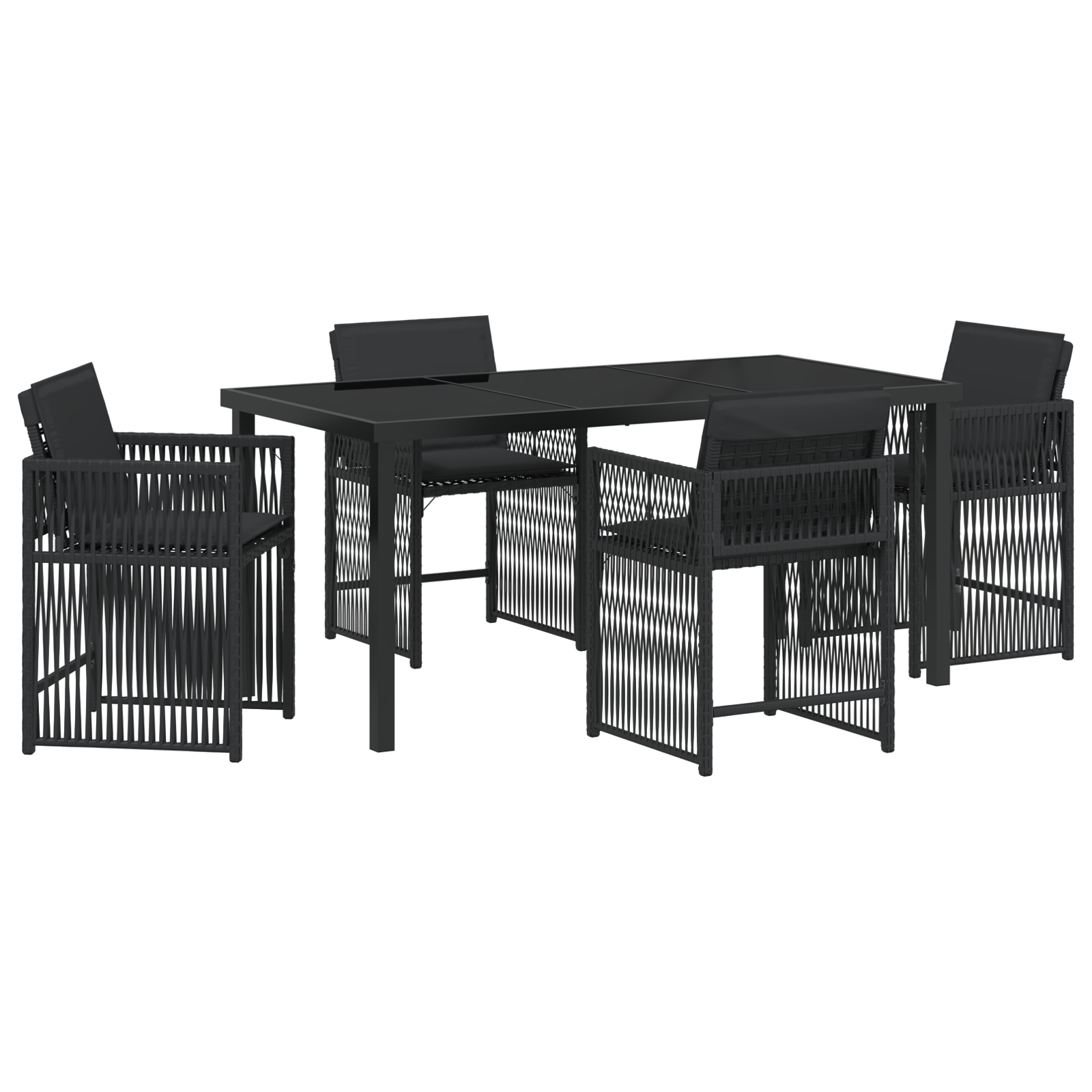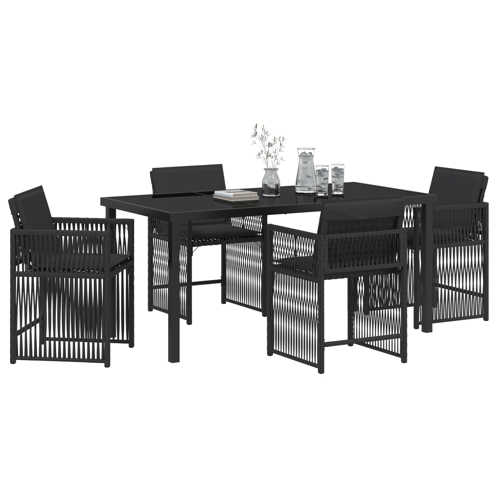 vidaXL 5-dielny záhradný jedálenský set s vankúšmi čierny polyratan