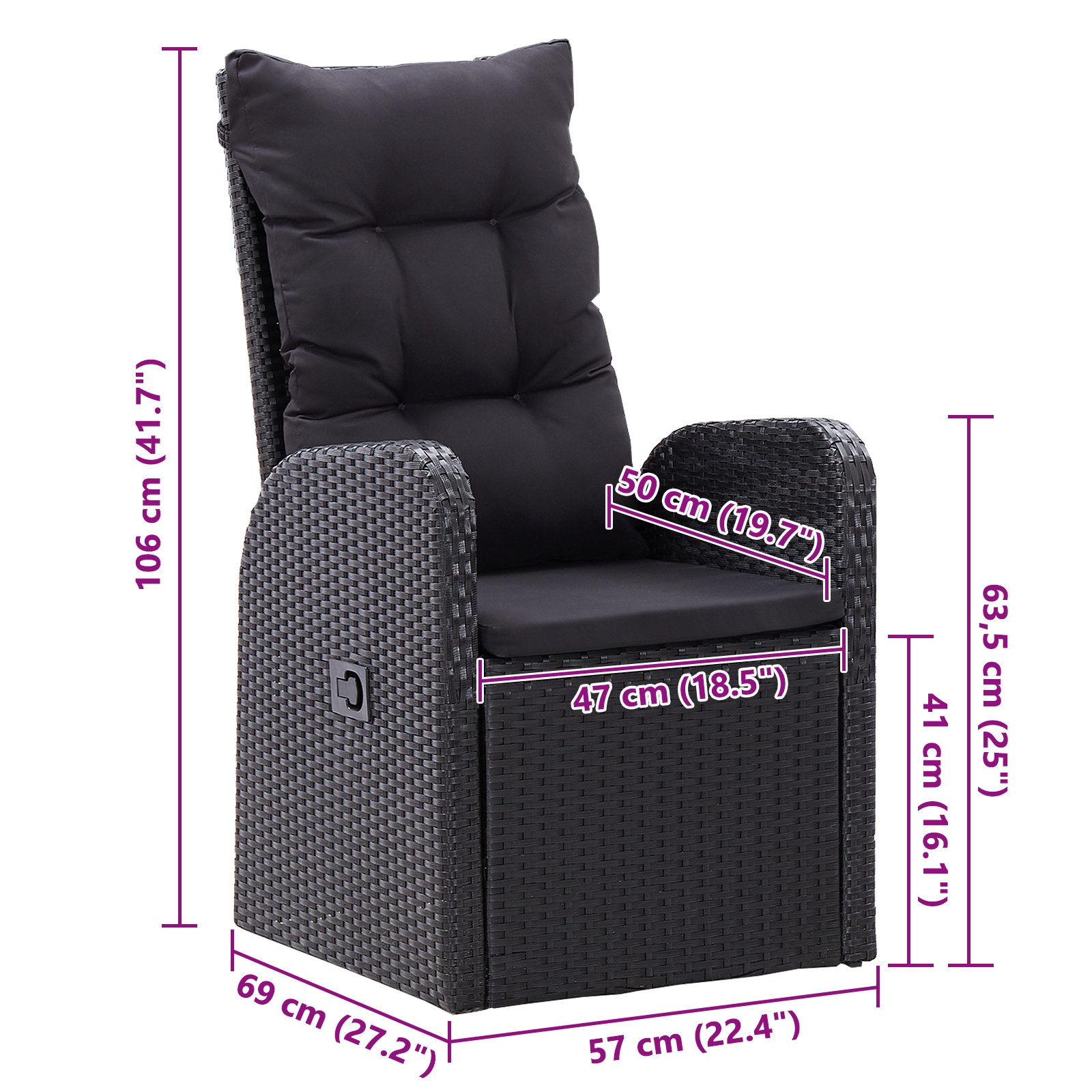 vidaXL 5-dielny záhradný jedálenský set s vankúšmi Čierny polyratan akácia
