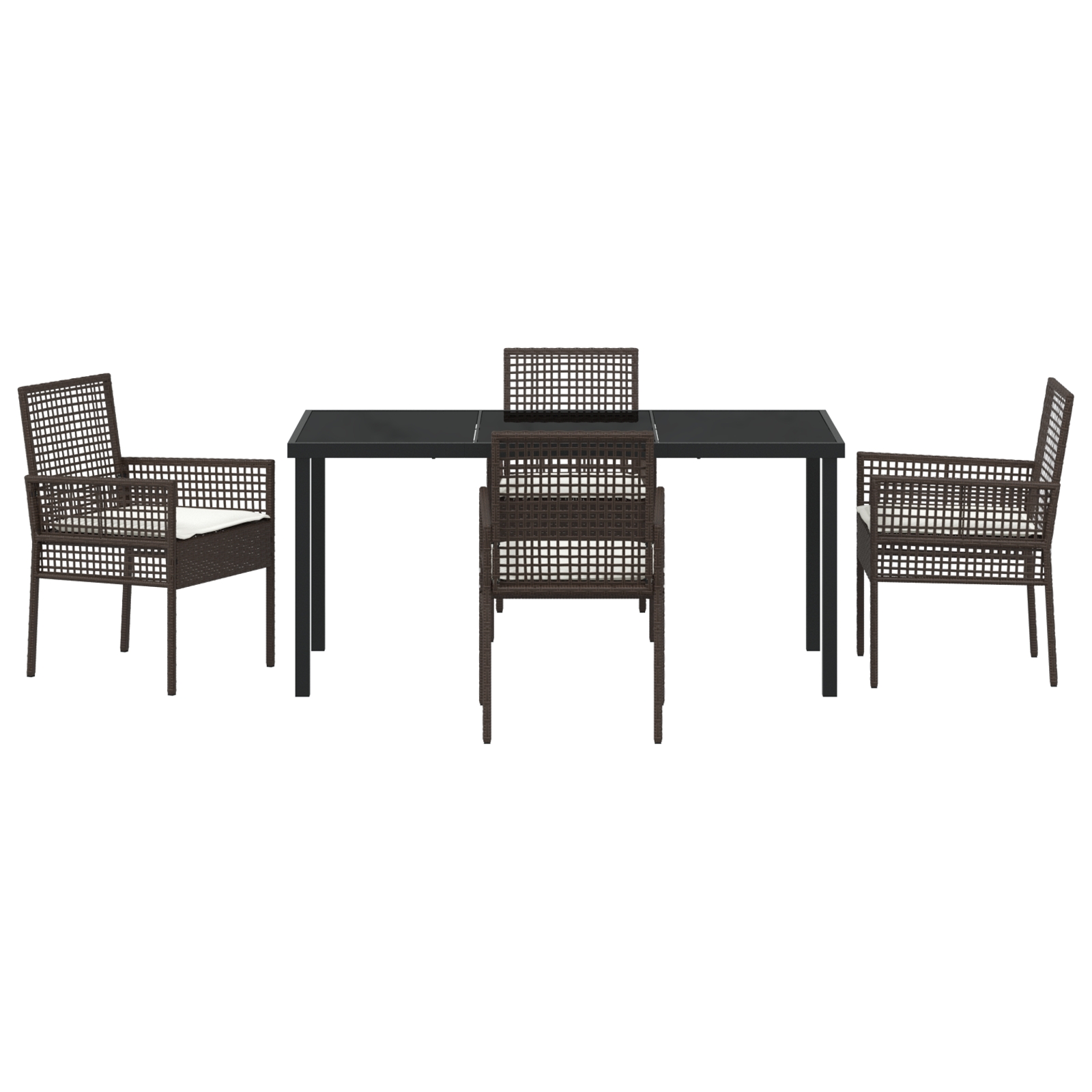 Tento záhradný jedálenský set má moderný vzhľad a je všetko o pohodlí. Je skvelý pre tvoje vonkajšie jedálenské miesta. Set má štyri dizajnové stoličky a priestranný obdĺžnikový stôl v peknej hnedej a krémovej kombinácii, ktorá rozžiari každý balkón alebo patio.