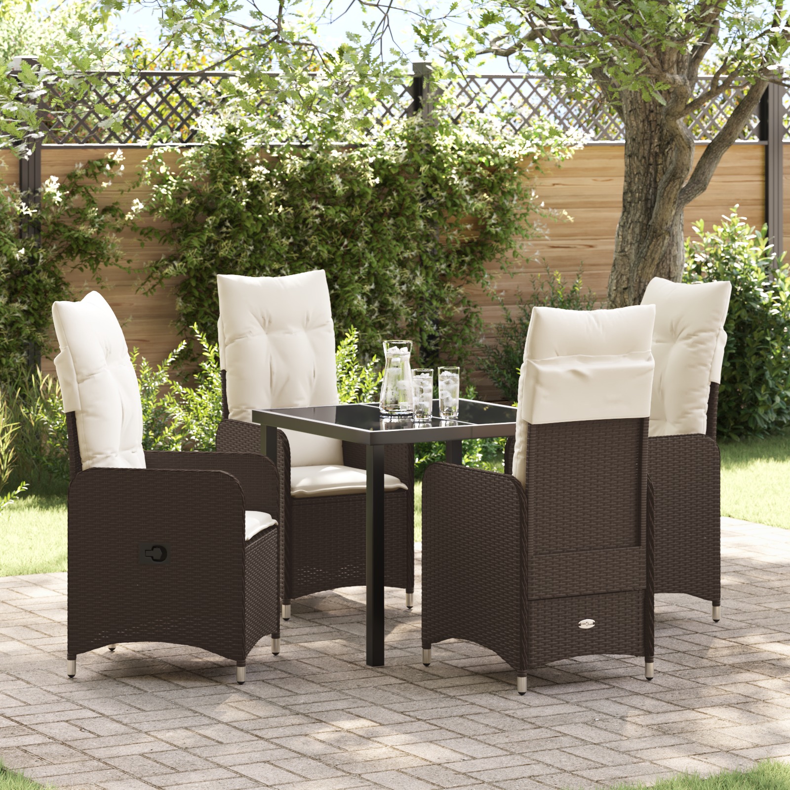 Tento set nastaviteľných záhradných stoličiek mení pravidlá hry, keď ide o vonkajšiu relaxáciu, s moderným hnedým polyratanom a mäkkými vankúšmi, ktoré vás pozývajú na oddych. Či už sa opalujete alebo sa rozprávate s priateľmi, moderný dizajn perfektne kombinuje štýl a praktickosť, a je ideálny pre balkóny, záhrady alebo dvory.