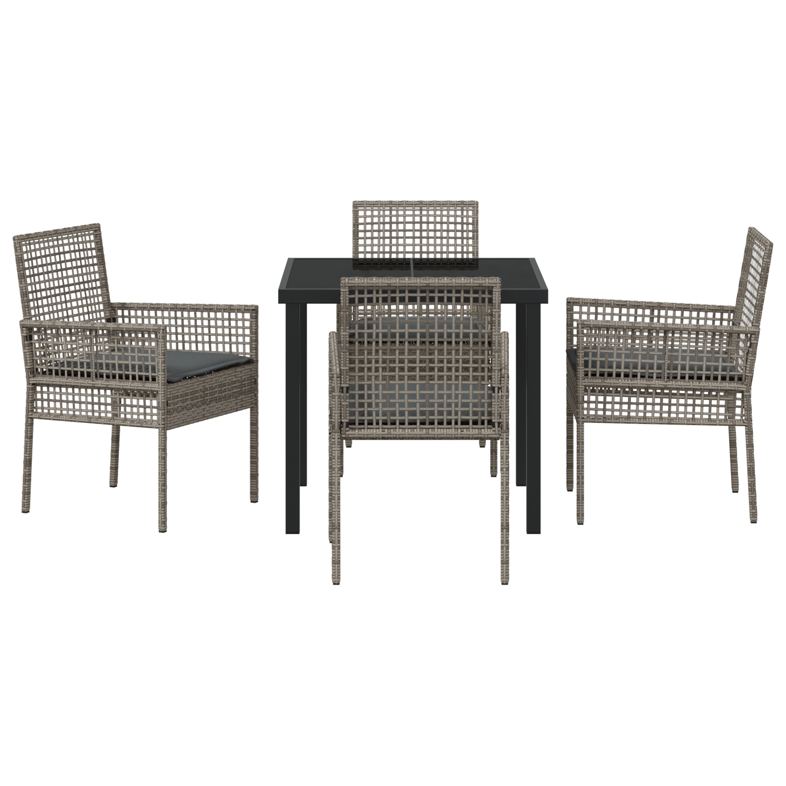 vidaXL 5-dielny záhradný jedálenský set s vankúšmi sivý poly ratan