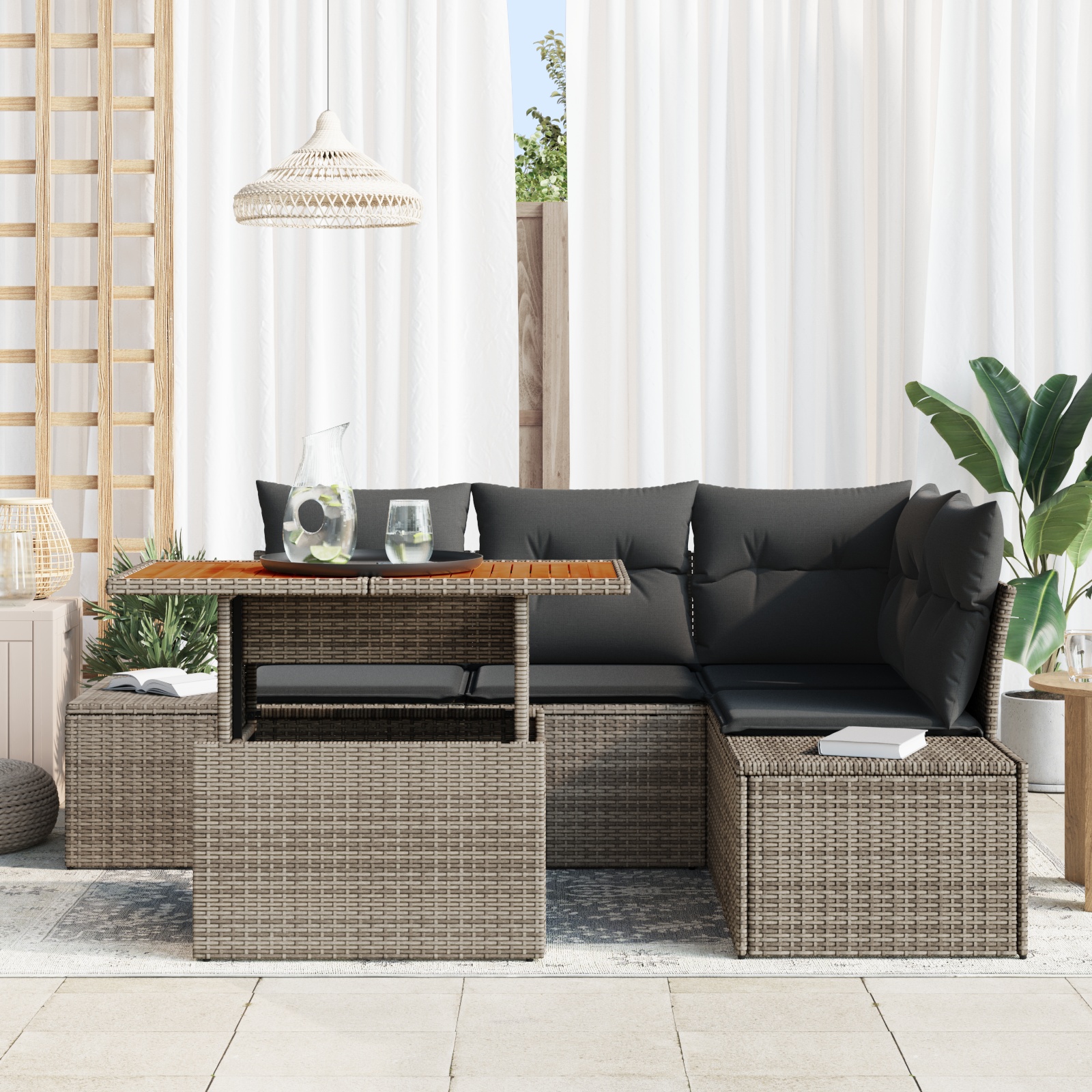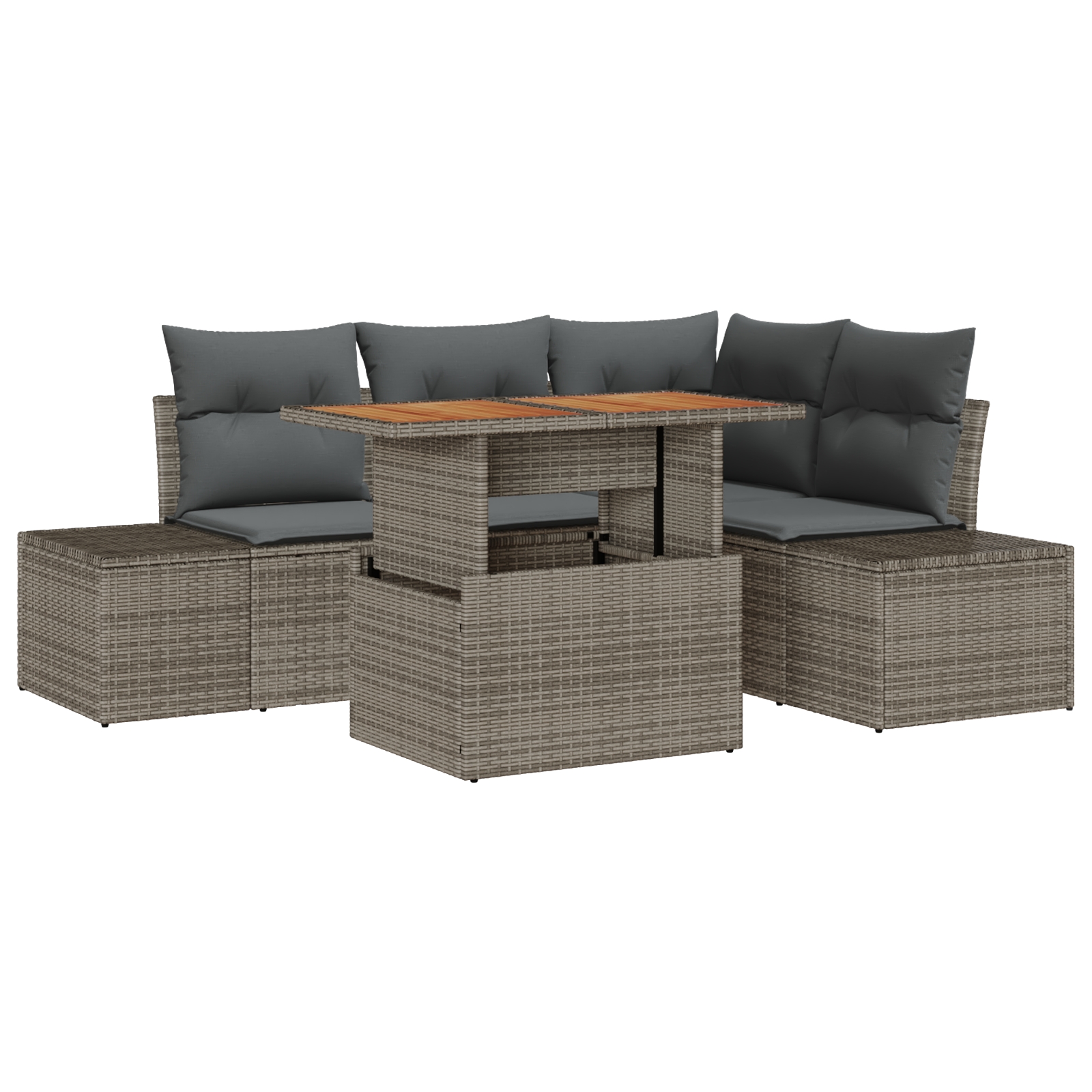 vidaXL 5-dielny záhradný jedálenský set s vankúšmi sivý poly ratan akácia