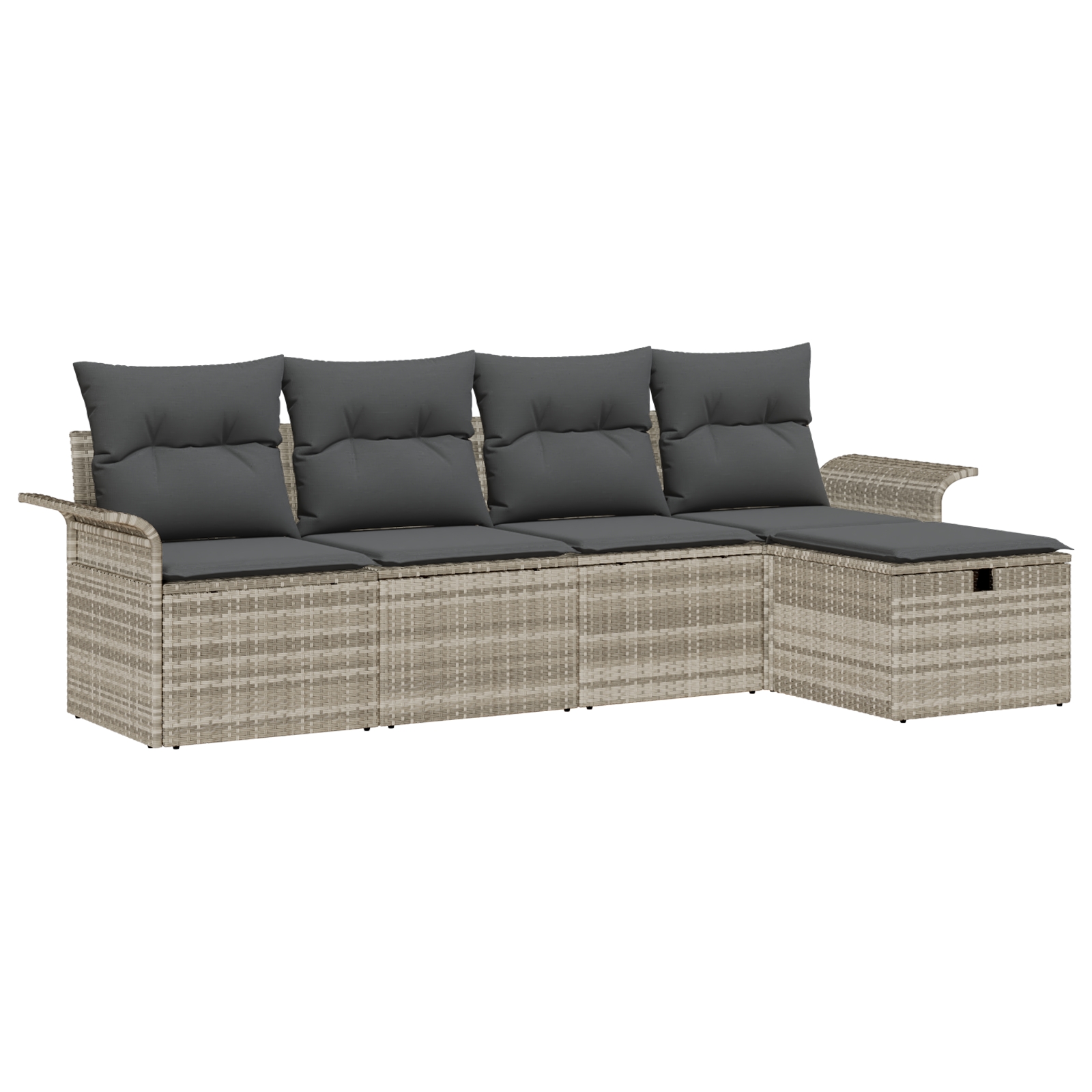 Tento 5-dielny záhradný pohovkový set s vankúšmi je presne to, čo potrebujete pre vaše vonkajšie stretávanie. Premení váš patio, balkón alebo záhradu na pohodlné a štýlové miesto. S moderným dizajnom a dostatkom sedenia je ideálny na slnečné dni a útulné večery s priateľmi a rodinou. Pomáha vám naplno využiť čas strávený vonku.