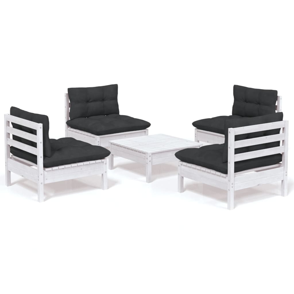 vidaXL 5-dielny záhradný set s antracitovými vankúšmi borovicové drevo