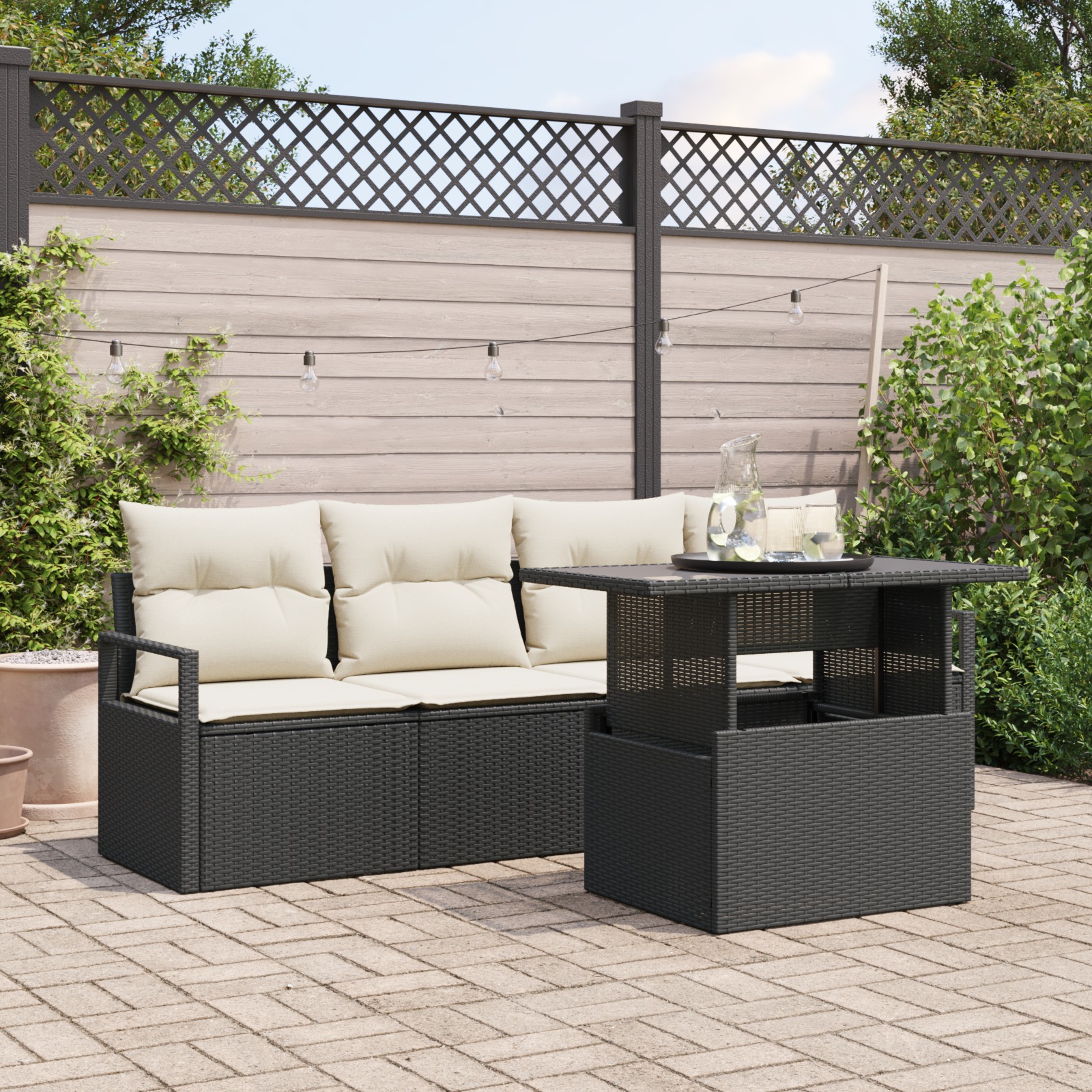 Tento 5-kusový záhradný sedačkový set spojuje komfort a praktický dizajn, čo z neho robí perfektný doplnok pre tvoje vonkajšie priestory ako balkón alebo patio. S čierno-krémovou farebnou schémou, je tento set vyrobený z ručne tkaného ratanu a mäkkých vankúšov a vytvára príjemnú atmosféru pre akékoľvek stretnutie alebo pokojnú večeru pod hviezdami.