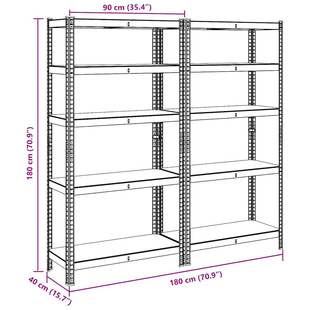 vidaXL 5vrstvové úložné police 2ks antracitové oceľ a spracované drevo