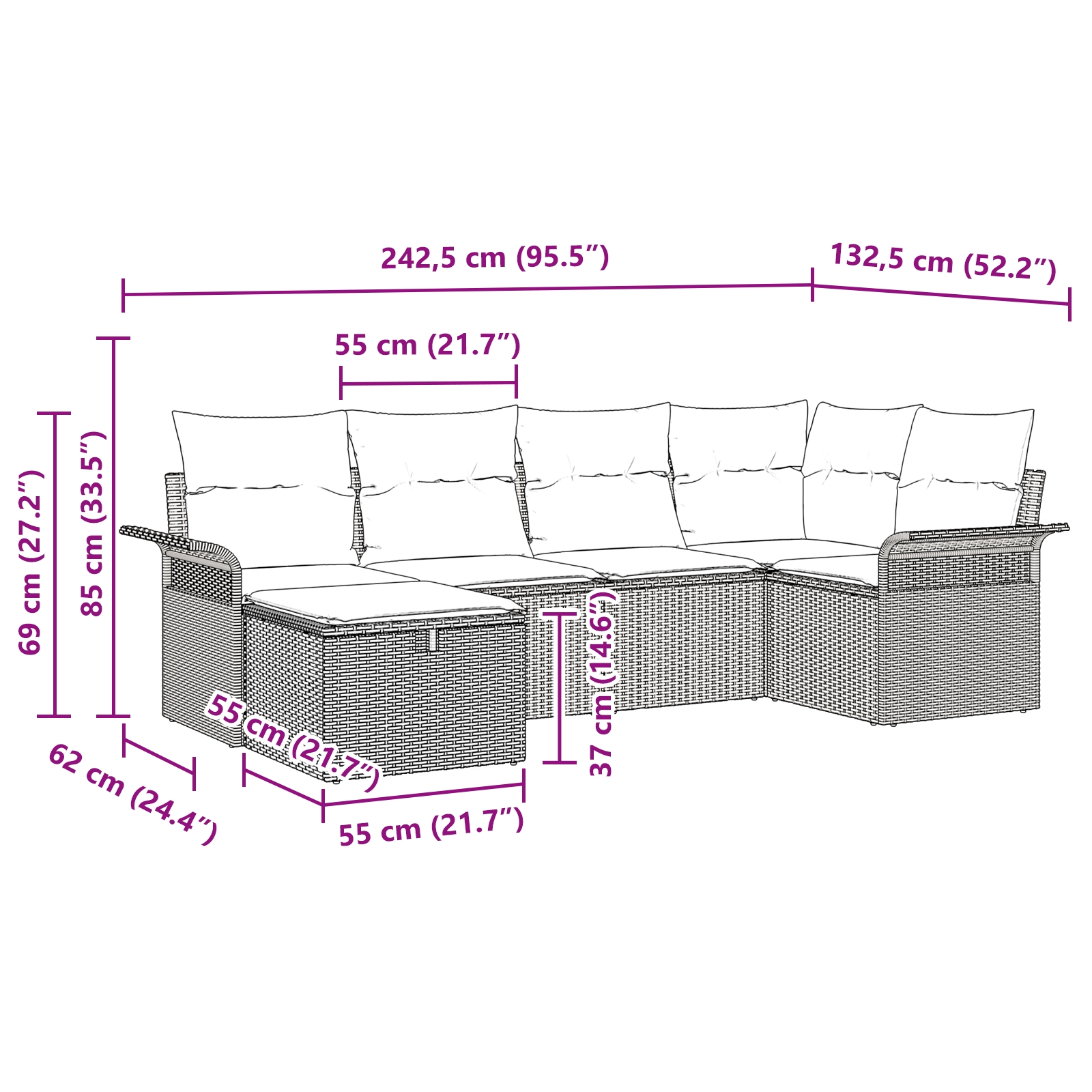 • Úložná funkcia: Každý kus, vrátane stredu a lakťových opierok, má praktické možnosti úložiska, ideálne na udržiavanie tvojich vankúšov alebo vonkajších vecí v poriadku. Tento chytrý dizajn pomáha udržať tvoj priestor neat a organizovaný.